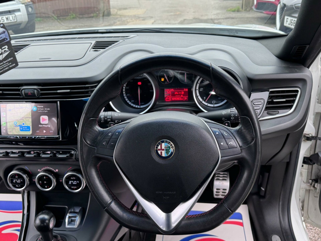This stunning Giulietta has been owned by the company MD for the last 5 years, every part of the car has been upgraded to a much later Veloce spec but with the economy of a JTD. Externally this includes - carbon headlights with LED bulbs, honeycomb front grill, front bumper apron and red stripe, new mirror caps and door handles, wrapped chrome glass surrounds. New front + rear badges, Brembo front brake calipers, 18'' horseshoe alloys, tinted glass, new rear diffuser, rear wiper delete. Inside - late Veloce heated sport seats, pioneer touchscreen head unit with wireless Apple CarPlay + reversing camera, Bose subwoofer and pioneer speakers, flat bottom steering wheel, LED bulbs. It's got full Alfa service history and just had a full suspension overhaul, new springs and shocks all round, polybushed rear hub arms. It drives like new! Price is negotiable without the seats. All our Alfas come with a new MOT, new cambelt + water pump(if Due) , a 6 month in-house comprehensive warranty. We are an Alfa Romeo specialist and pride ourselves on our reputation, check out our 100+ 5 star reviews in alloy wheels - turbine design, 60-40 split folding rear seats, abs - anti lock braking system, asr - acceleration skid control, airbags - driver, airbags - front side, airbags - passenger, airbags - passenger deactivation, airbags - window, alarm system, armrest - front with storage, bas - brake assistant, blue&me - bluetooth hands free system, chrome effect window sills, climate control - dual zone, cruise control, daytime running lights - led, door mirrors - body coloured, door mirrors - electrically adjustable and heated, door mirrors - satin effect housing, ebd - electronic brakeforce distrubution, eps - electric power assisted steering, electric windows - front and rear, electronic q2 differential, front fog lights, headlights - darkened, headlining - darkened interior, heated washer jets, hill holder, isofix attachments for child seat protection, kick plates - aluminium, multifunction display, radio with cd-mp3, rear cluster lights - led, rear spoiler, remote audio controls, remote central locking with electronic key, safe lock, seats - drivers height adjustment, seats - passenger height adjustment, side skirts, space saver spare steel wheel - 17-18in, speakers x6, sports dials with white illumination, sports pedals - aluminium, steering wheel - height and reach adjustment, steering wheel - leather with red stitching, steering wheel - leather-sports, storage - front seat back pockets, suspension - sports, trim inserts - dark brushed aluminium, trip computer, usb and aux, vdc - vehicle dynamic control, voice recognition and media player, steering wheel - paddles, visibility pack, cooled glove box, headlights - bi-xenon, 18in alloy wheels - 5 hole design, brake calipers - red brembo, tinted windows - dark rear, bose sound system
