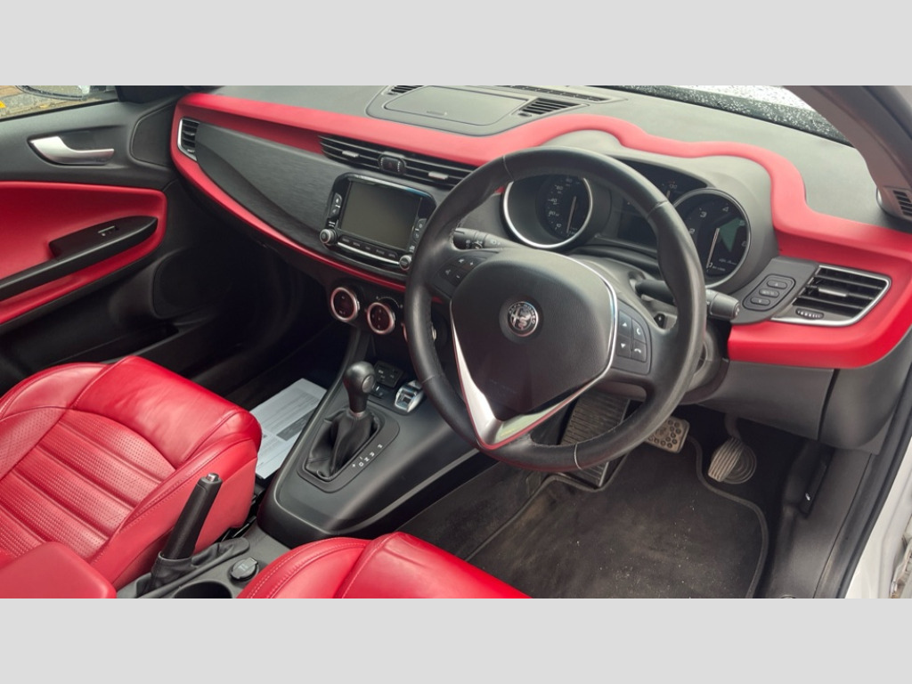 Alfa Romeo Giulietta 1.6 JTDM-2 120 Super 5dr TCT Bluetooth Handsfree Phone Connection, Cruise control, Drive mode selector, Multifunction digital display, PAS, Rear parking sensor, Remote boot release, Service interval indicator, Smartphone connectivity, Trip computer, Wireless internet connection, Diesel particulate filter, Q2 electronic differential, Steering wheel mounted audio controls, Body coloured bumpers, Body coloured front splitter, Chrome effect window sills, Electric front windows, Electric rear windows, Electrically adjustable and heated door mirrors, Fog lights, Heated rear window, LED daytime running lights, Rear LED lights, Rear spoiler, Rear wiper, Satin chrome exterior door handles, Satin effect door mirrors, 12V socket, 12V socket in luggage compartment, 2 outer rear head restraints, 60/40 split folding rear seat, Cooled glovebox, Cupholder, Dual zone climate control, Front centre armrest with storage compartment, Front head restraints, Front seat back storage pockets, Isofix child seat preparation, Leather steering wheel, Steering wheel gearshift paddles, velvet floor mats, 3x3 point rear seatbelts, Curtain airbags, Driver/front passenger airbag, Passenger airbag deactivate switch, Side airbags, Tyre pressure monitoring system, VDC with hill holder (ABS + ASR + EBD + Brake assist), Alfa code immobiliser and alarm, Remote central locking, Matte black trim inserts, Sports dials with white illumination, Steel space saver spare wheel