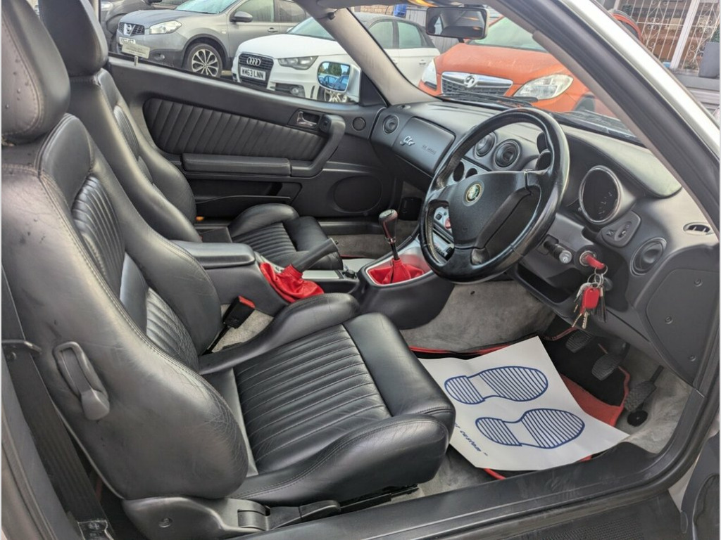 BRISTOL CAZ THIS RARE FIND 2001 ALFA ROMEO GTV 2.0 T-SPARK 1.6V TURISMO COUPE 2 DOOR MANUAL IN METALLIC SILVER WITH CONTRASTING BLACK SPORTS LEATHER INTERIOR FULL SERVICE HISTORY WITH PAPER WORK CAM BELT BEING LAST REPLACED AT 46,203 MILES THIS FUTURE CLASSIC IS ONE TO KEEP 3 KEYS 2 REMOTES 4 KEEPERS APRIL 2026 MOT NEEDS FOR NOTHING 17 INCH TELEDIAL 5 RING ALLOY WHEELS BRISTOL CLEAN AIR ZONE FRIENDLY PRIVATE GTV PLATE WITH THIS CAR L21GTV Adjustable Steering Column/Wheel, Air Bag Driver, Air Bag Passenger, Alarm, Alloy Wheels (16in), Anti-Lock Brakes, Armrest, Body Coloured Bumpers, Central Door Locking, Climate Control, Electric Windows (Front), Front Fog Lights, Immobiliser, In Car Entertainment (Radio/Cassette), Mirrors External, Power-Assisted Steering, Side Protection Mouldings, Silver/Light Grey, Spare Wheel (Space Saver), Speakers, Upholstery Cloth