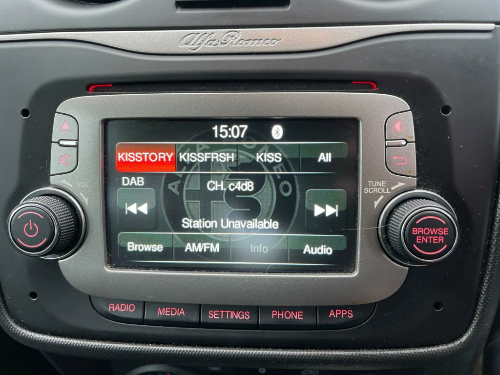 This 2017 Alfa Romeo MiTo TB Super is a well maintained example, having had only two owners from new. It features the Super trim and is powered by an efficient 0.9L Euro 6 petrol engine. Inside, you'll find the Uconnect 5in Colour Touchscreen Infotainment System, complete with Bluetooth connectivity for your convenience. The Comfort Pack adds further practicality, including rear parking assistance sensors to help you manoeuvre with ease.This particular Alfa Romeo MiTo stands out with its impressive fuel economy, achieving a remarkable 67 miles per gallon, which indicates it is more economical than many similar vehicles. Furthermore, its low CO2 emissions mean it is also kinder to the environment. This combination of efficiency and thoughtful features makes the MiTo TB Super a compelling choice. bric-eco leather - anthracite-black, 17in alloy wheels - turbine design, 7 airbags, alfa code immobiliser and alarm system, alfa dna - vehicles dynamic control switch, aluminium sports pedals and footrest, body coloured bumpers, chrome effect window sills, climate control - manual, comfort pack, cruise control, eps - electric power assisted steering, electric windows - front, electrically adjustable and heated body coloured wing mirrors, exhaust tailpipe - chrome, front fog lights, kick plates - aluminium, rear spoiler, remote central locking, satin effect headlight and rear light surrounds, satin effect wing mirror surrounds and door handles, space saver spare wheel, steering wheel with remote controls and gear knob in leather, tpms - tyre pressure monitoring system, uconnect 5in colour touchscreen infotainment system, vdc - vehicle dynamic control