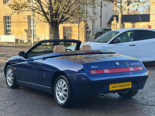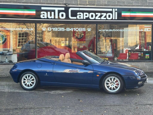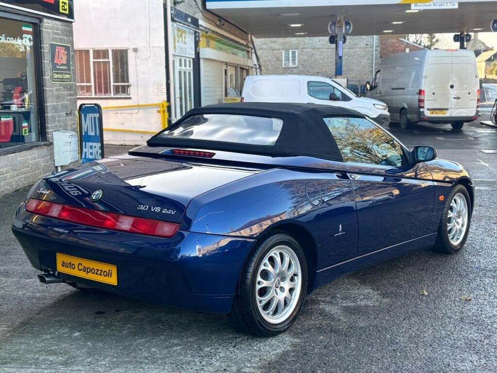 VERY RARE ONE OWNER 2002 SPIDER LUSSO ''BUSSO'' 3.0 V6 24v WITH ONLY 65K MILES, FULL SERVICE HISTORY WITH CAMBELT/WATER PUMP CHANGED 65K MILES IN AUG 2025, FINISHED IN GORGEOUS LIGHTING BLUE METALLIC WITH MOMO NATURAL TAN LEATHER TRIM, ELECTRIC POWER FOLDING BLACK SOFT TOP, FULL SET OF KEYS WITH MASTER KEY AND TWO META ALARM REMOTES, BLAUPUNLET RADIO/NAVIGATION with CD AUTOCHANGER, Air Conditioning, Electric Windows, Electric Door Mirrors, Remote Central Locking, 3 Spoke Black Leather Steering Wheel, Electric Antenna, 16'' Alloy Wheels with Red Bembo Brake Calipers, ABS Brakes, Traction Control System, Front Fog Lights, 6 Speed Gearbox, Full service history, 2 seats, LIGHTING BLUE METALLIC with NATURAL LEATHER, 1 owner, Upgrades - CD Autochanger (Including Navigator), Navigator, Metallic Paint, Puncture Repair Kit (in lieu of spare wheel), Meta Security Alarm Immobiliser, Colour-Lighting Blue Metallic, Blaupunkt Radio/Navigation, Momo Natural Tan Leather, AUTO CAPOZZOLI ILCHESTER, Est Since 1959, Alfa Romeo/Abarth/Fiat Specialists, £10,995, 16'' Alloys