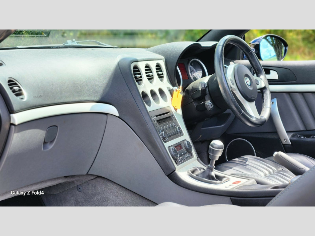 This 2007 Alfa Romeo Spider convertible with only 79650 miles on the clock is a stunning vehicle that is ULEZ compliant and has an MOT that expires on 21/10/2026. Powered by a 3.2 JTS V6 24V petrol engine, this 2-seater, 2-door car delivers 260 bhp while emitting 273 g/km of CO2. Equipped with features such as adjustable steering column/wheel, armrest, cruise control, and electric windows (front), as well as in-car entertainment (radio/CD), this manual transmission Q4 model is in exceptional condition and promises a thrilling driving experience. justable steering column/wheel, armrest, cruise control, electric windows (front), in car entertainment (radio/cd), rain sensor, seat lumbar support, steering wheel leather, steering wheel mounted controls (audio), trip computer, upholstery leather, air bag driver, air bag knee, air bag passenger, air bag side, alarm, anti-lock brakes, central door locking, electronic brake force distribution, electronic stability programme, front fog lights, immobiliser, parking aid (rear), power-assisted steering, seat - isofix anchorage point, alloy wheels (17in), mirrors external (electric heated/folding), spare wheel (space saver), computer (driver information system)