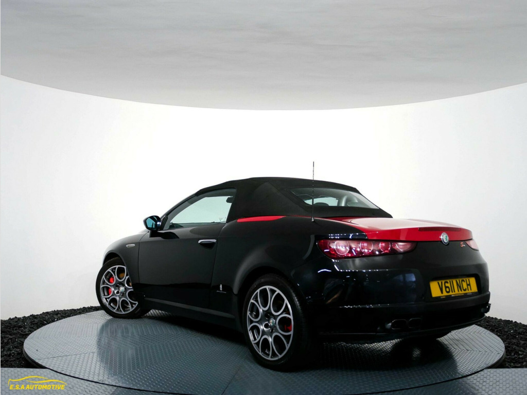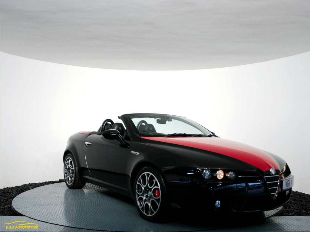 Beautiful Alfa Romeo Spider finished in Metallic black with a contrasting Full Black Leather interior — a rare and superb example that looks and drives exactly as it should. Will be Supplied with a fresh MOT and fresh service, fully prepared and ready for its next owner. Comes with 2 keys. Great specification including 18'' Diamond cut alloy wheels, Satellite navigation system, Multi functional steering wheel, Upgraded sound system plus much more — this vehicle really must be seen to be appreciated. At E.S.A Automotive Ltd, we offer a relaxed, no-pressure buying experience and every vehicle comes with 12 months AA Breakdown Cover and a comprehensive 3-month warranty for added peace of mind, with AA DriveAway Insurance also available to purchase for a small fee (subject to eligibility). Reserve any vehicle with a £99 refundable deposit. We work with a panel of lenders and can consider a wide range of customer circumstances. Finance subject to status and lender approval. We are Trading Standards Approved, committed to AA Cars Standards, and proud award winners with 100% positive verified reviews, including AutoTrader Retailers Customer Choice Award 2020, Yorkshire Prestige Award Car Dealer of the Year 2021/22, and South Yorkshire Car/Van Dealer of the Year 2023, and we have been Highly Rated by AutoTrader from 2019–2025 — contact our friendly team today to book a viewing or reserve.. Adjustable Steering Column/Wheel, Air Bag Driver, Air Bag Knee, Air Bag Passenger, Air Bag Side, Alarm, Alloy Wheels (17in), Anti-Lock Brakes, Armrest, Central Door Locking, Computer (Driver Information System), Cruise Control, Electric Windows (Front), Electronic Brake Force Distribution, Electronic Stability Programme, Front Fog Lights, Immobiliser, In Car Entertainment (Radio/CD), Mirrors External (Electric Heated/Folding), Parking Aid (Rear), Power-Assisted Steering, Rain Sensor, Seat - ISOFIX Anchorage Point, Seat Lumbar Support, Spare Wheel (Space Saver), Steering Wheel Leather, Steering Wheel Mounted Controls (Audio), Trip Computer, Upholstery Leather, Satellite Navigation System by Maps, Satellite Navigation Syst. by Maps CONNECT syst., Frau Pieno Fiore Leather Upholstery, Car Radio with Audio CD and MP3 Reader, Metallic Paint, Alloy Wheels - 18in 7 Hole With 235/45, Luggage Retaining Net, Visibility Pack, 18in Wire Spoke Alloy Wheels With 235/45. Full service history