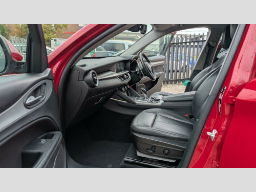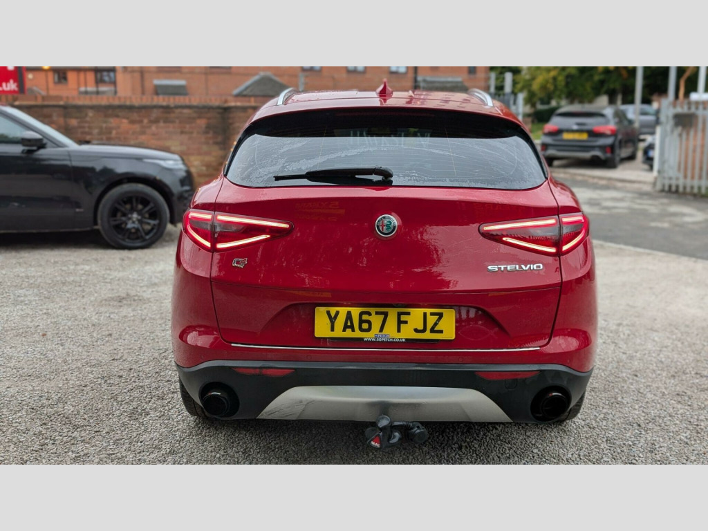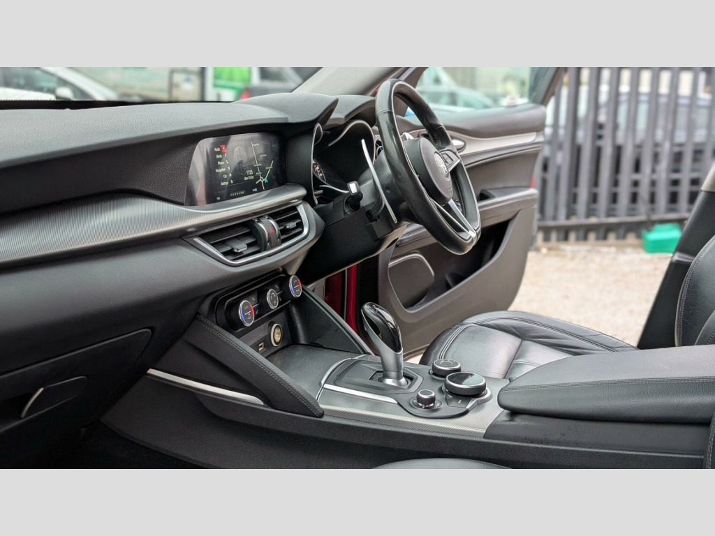This 2017 Alfa Romeo Stelvio T Speciale offers a clear vehicle history, providing peace of mind for its next owner. This four wheel drive SUV is equipped with a powerful 2.0 litre petrol engine and meets Euro 6 emissions standards. Inside, you'll find dual zone automatic air conditioning for comfortable journeys, and the Alfa Connect 3D Nav 8.8 inch infotainment system with Bluetooth connectivity keeps you entertained and informed. The Lighting Pack includes Xenon headlights for enhanced visibility, and rear parking sensors combined with a rear backup camera, including parking assistance, make manoeuvring effortless.The Stelvio Speciale boasts impressive performance, accelerating from 0 to 62 miles per hour in just 5.7 seconds, demonstrating its dynamic capabilities. This acceleration figure highlights its advantage over many similar vehicles in its class. Furthermore, the generous boot space ensures practicality for all your needs, and with a towing weight of 2300 kg, it is well suited for carrying larger loads. aux-in line, 12v plug, 19in alloy wheels - 10-spoke, 2 front usb ports, 2 rear usb ports, 7in colour tft instrument cluster, abs - anti lock braking system, air vents - rear, airbags - driver, airbags - passenger, alfa connect 3d nav 8.8in infotainment system, aluminium metal sports pedals and footrest, autonomous emergency braking - aeb, brake calipers - red, chrome window surrounds, cold weather pack, dab radio, door sill scuff plates - bright chrome, double lateral chrome exhaust pipe, dual-zone automatic air conditioning, dusk sensor - rain sensor, esc - electronic stability control, electric windows - front, electrically adjustable seat pack, electrochromic rear view mirror, fix and go puncture repair kit, front and rear floormats, functional led lighting, hill descent control, led tail and brake lamps, lane departure warning - ldw, lighting pack, parking sensors - front, parking sensors - rear, power folding mirrors, power steering, power tailgate, remote central locking, remote tailgate release - key fob button, shift paddles on steering column, speakers x8, sport package, steering wheel - leather-sports, steering wheel controls, tpms - tyre pressure monitoring system, two tone dashboard with aluminium interior finishing, vehicle theft alarm with hood protection and intrusion sensor - thatcham, rear backup camera, aluminium roofbar, compact spare tyre, leather - black