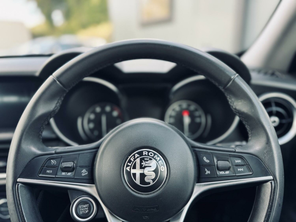 Discover this 2019 Alfa Romeo Stelvio T Super, a sophisticated SUV that blends Italian style with impressive performance. This Euro 6 compliant model is equipped with a powerful 2.0 litre petrol engine and a responsive four wheel drive system, ensuring a confident driving experience in all conditions. Inside, youll find dual zone automatic air conditioning for personalised comfort, along with front and rear parking sensors to aid manoeuvrability. The Alfa Connect 3D Nav 8.8 inch infotainment system, complete with Bluetooth connectivity, keeps you entertained and informed on every journey. Experience the thrill of acceleration with this Stelvio, capable of reaching 0 to 62 miles per hour in just 7.2 seconds, a testament to its dynamic capabilities. The inclusion of a dusk sensor and rain sensor, which automatically activate the headlights, adds to the convenience and safety. Furthermore, the generous boot space offers ample room for luggage or shopping, making it a practical choice for families and adventurers alike. These features collectively highlight how this Alfa Romeo Stelvio offers a superior driving experience compared to other vehicles in its class.