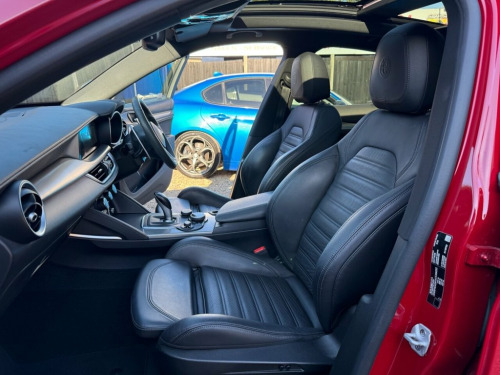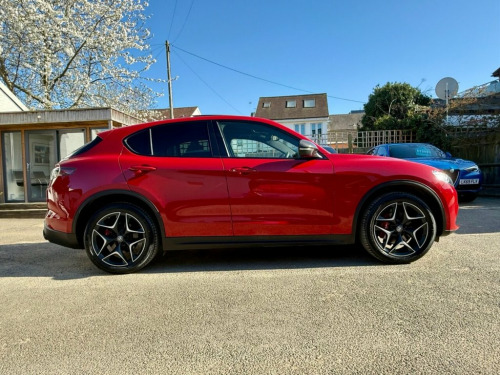 Veloces Are Very Pleased To Offer For Sale This Very Rare Alfa Romeo Stelvio Ti Edizione … Finished In Classic Alfa Rosso With Full Black Leather Interior … A High-Spec SUV With 20" Star Alloys & Gloss Black Window Surrounds …Much Sought After Twin Glass Panoramic Sunroofs.. Alfa Connect 3D Nav, 8.8" Touchscreen, Apple CarPlay & Android Auto For Seamless Connectivity …Upgraded Leather Dashboard & Leather Topped Door Cards.. Dual-Zone Automatic Air Conditioning & Cruise Control For Added Comfort … Convenience Package With Remote Central Locking, Rear Backup Camera, Power Tailgate & Keyless Entry … Alfa DNA Driving Mode Selector — Dynamic, Natural, And Advanced Efficiency Modes … Loaded With Safety Features Including Lane Departure Warning, Autonomous Emergency Braking (AEB) & Forward Collision Warning (FCW) … Rain Sensing Wipers & Headlights That Auto Activate At Dusk Make It Ready For All Conditions … Hill Descent Control For Confidence On All Terrains … LED Rear Lights & Privacy Glass … ..Privately Owned With Full Service History, All Manuals & 2 Keys..We are Finance Credit Experts & Have Rates From just 5.5% Flat.. ..RESERVE THIS CAR NOW FOR JUST £199.. Driver Assistance Pack Plus, 20in Alloy Wheels - Dark V-Spoke, 20in Alloy Wheels - Black Diamond, 6-Way Electrically Adjustable Drivers Se, 6-Way Electrically Adjustable Passenger , 7in Colour TFT Instrument Cluster, ABS - Anti Lock Braking System, Adaptive Cruise Control, Airbags - Driver, Airbags - Passenger, Alfa Connect 3D Nav 8.8in Infotainment S, Alfa DNA Driving Mode Selector, Aluminium Shift Paddles on Steering Colu, Aluminium Sports Pedals and Footrest, Aluminium Tunnel Cover - Dashboard Inser, Ambient LED Lighting - Front and Rear, Apple CarPlay and Android Auto, Autonomous Emergency Braking - AEB, Bi-Xenon Headlights - 35W - AFS, Black Window Surrounds, Bolster Support with Electr