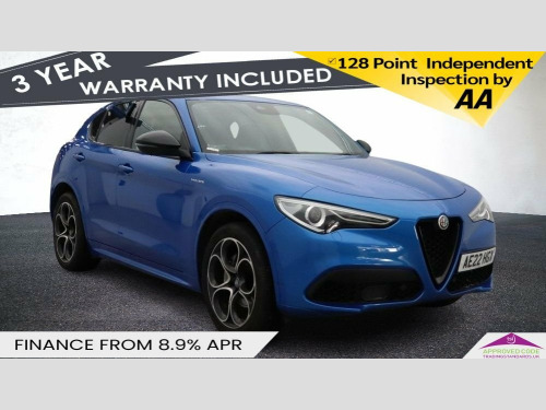 This 2022 Alfa Romeo Stelvio T Veloce offers excellent peace of mind with a long MOT. This four wheel drive SUV is powered by a 2.0 litre Euro 6 petrol engine, capable of reaching 0-60mph in a swift 5.7 seconds. It features passive entry with keyless go for both front doors, a rear view camera with dynamic grid lines, and front and rear parking sensors to aid manoeuvrability. Inside, you'll find the comfort of heated front seats and a heated steering wheel, perfect for those colder mornings. The generous boot space ensures practicality for all your needs. The Alfa Romeo Stelvio T Veloce stands out with its impressive performance and thoughtful features. The four wheel drive system provides confident handling in various conditions, while the powerful 2.0 litre engine delivers exhilarating acceleration. The inclusion of a rear view camera and parking sensors makes parking simpler and safer, indicating a higher level of driver assistance compared to many similar vehicles. Furthermore, the heated seats and steering wheel offer enhanced comfort, setting this Stelvio apart as a well equipped and capable SUV. With a towing weight of 2300 kg, it is also ready for your larger loads. 12v Power Outlet, 230V-50HZ Auxiliary Power Outlet in Boot, 8 Speaker Audio System, Alfa Connect 3D Nav 8.8in Infotainment S, Alfa Connected Box, Alfa Connected Services, Apple CarPlay and Android Auto, Connectivity - 2 USB Rear Ports, DAB Radio, TMC - Pro, West European Map, Wireless Charging Pad, 20in Alloy Wheels - Dark 5-Petal Design, Black Window Surrounds, Body Colour Kit, Dark Matt Exhaust Tips, Dark Miron Scudetto - Shield, Dark Tinted Rear Windows, Electric Windows - Front and Rear, Electrically Adjustable and Folding Door, Exterior Door Handle Courtesy Lights, Heated Washer Nozzles, Kick Plates - Aluminium, Monotone Central Wheel Caps, Outside Rearview Mirror - Electrochromic, 6-Wa