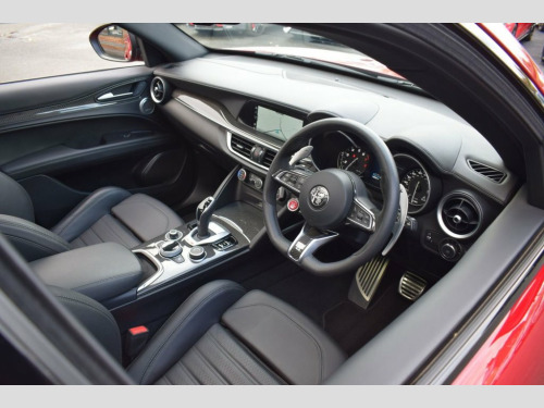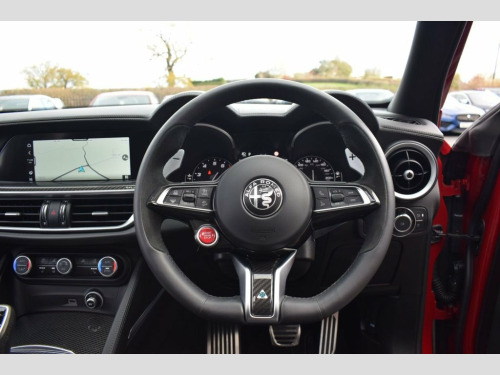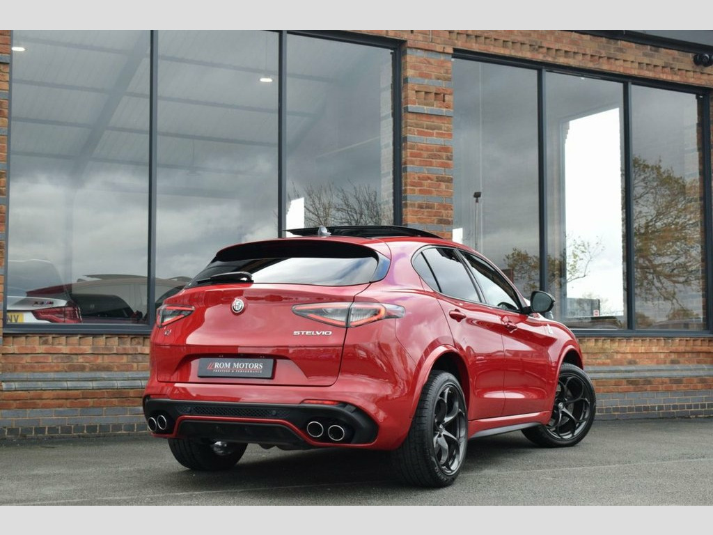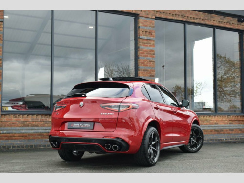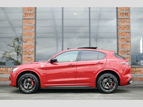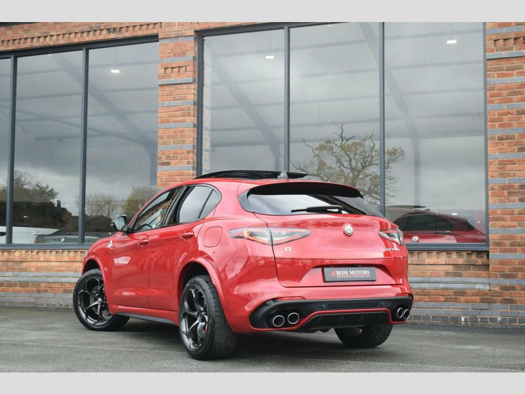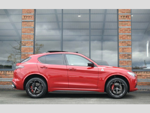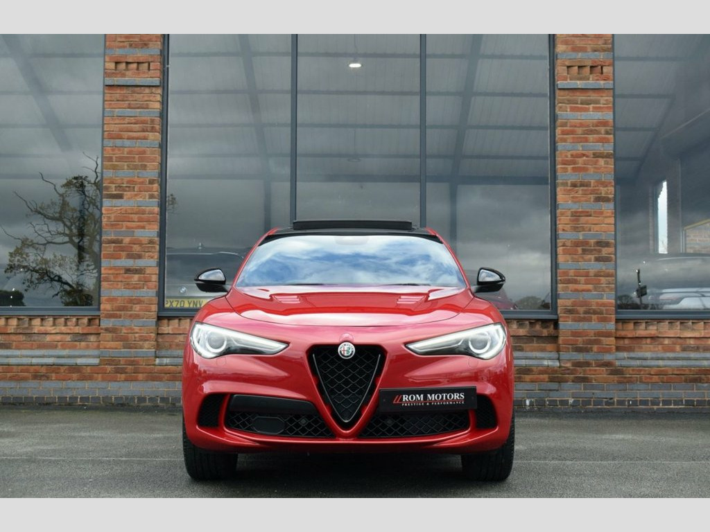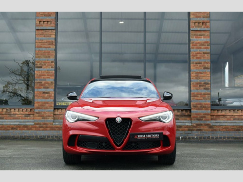 Rom Motors are delighted to present this stunning Alfa Romeo Stelvio Quadrifoglio for sale. Finished in trademark Alfa Red, this is an immense example with a top specification throughout. First of all it's Panoramic Glass Sunroof is a MUST on any SUV, Harman Kardon Surround Sound, Red Contrast Stitching, Driver Assistance Pack, Electric Memory Seating, Electric Tailgate and Carbon Flat Bottom Steering Wheel. Its 3.6 second 0-60mph puts it toe to toe with the Lamborghini Urus, and considerably faster than the Aston Martin DBX & Audi RSQ8. An engineering marvel & menace on the road with its fully blacked out styling. Oh, we forgot to mention the sound... you'll have to come find out about that yourself and we're sure you'll fall in love. Full Alfa Romeo Service History, completed in 2024 & most recently September 2025, all with just 1 owner from new! Sports Leather - Black with Dark Grey St, 21in Alloy Wheels - Dark 5-Hole - Quadri, 12v Power Outlet, 20in Alloy Wheels - Dark 5-Hole - Quadri, 230V-50HZ Auxiliary Power Outlet in Boot, 3D Carbon Deco, 6-Way Power Driver Seat with Memory and , 6-Way Power Passenger Seat with 4 Way Lu, ABS - Anti Lock Braking System, AQS - Air Quality System Function, ASR - Anti-Slip Regulation, Active Cruise Control, Air Vents - Rear, Airbags - Driver, Airbags - Passenger, Airbags - Passenger Deactivation, Alarm System with Bonnet and Intrusion P, Alfa Active Torque Vectoring, Alfa Chassis Domain Control - CDC, Alfa Connect 3D Nav 8.8in Infotainment S, Alfa Connected Box, Alfa Connected Services, Alfa Cylind