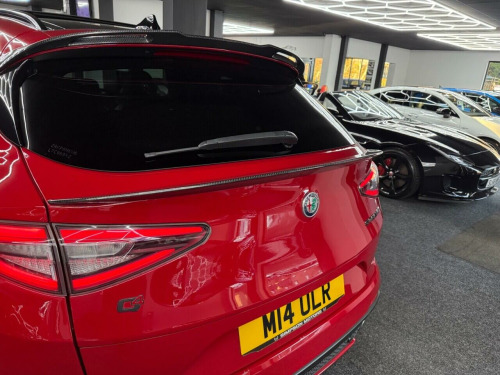 . Panoramic Glass Roof, Electric memory Seats, Red Interior Stitching, Embossed Logos on Headrests, Heated Steering wheel, Carbon Interior & Exterior, 20in Alloy wheels - 5-Hole - Silver, Active Cruise Control, Alfa Connect 3D Nav 8.8in Infotainment System, Alfa DNA Driving Modes - Including RACE Function, Aluminium Metal Sports Pedals and Footrest, Aluminium Shift Paddles on Steering Column, Apple CarPlay and Android Auto, Autonomous Emergency Braking - AEB, Bi-Xenon Headlights - 35W - AFS, Carbon Fibre Interior Accents, Connectivity - 2 USB Rear Ports, Connectivity - USB & Aux-in Armrest Ports, Dark Stelvio-Q4 Badge, Dark Tinted Rear Windows, Dark V Grille, Darkened Rear Lights, Digital Audio Broadcast, Electrically Adjustable and Folding Door Mirrors, Electrically Operated Tailgate, Electrochromic Rear View Mirror, Lane Departure Warning - LDW, Launch Control, Power Seats Pack, Power Steering, Quadrifogilo Leather Flat Bottomed Sports Steering Wheel, Quadrifoglio Badge, Rear View Camera with Dynamic Grid Lines, Sports Leather Gear Stick, Wireless Charging Pad, 20in Alloy Wheels - Dark 5-Hole, Alfa Red, Black Gloss Roofbar, Electrically Operated Sunroof, Heated Rear Seats, Leather-Alcantara - Sports Seats - Black with Red Stitching.