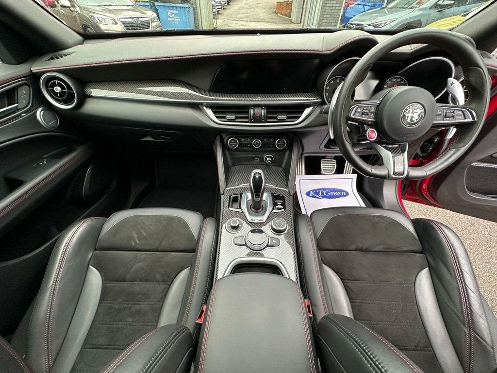 This Stelvio Quadrifoglio looks stunning in 'Alfa Red' with a Leather/Alcantara Interior. One Owner from New with Full Alfa Romeo Main Dealer Service History (inc Belt change). Beautifully specced with over £5000 of Options: Panoramic Roof, Harman Kardon Audio, 21" Wheels in Dark Grey, Red Calipers, Flat Bottomed Sports Steering Wheel with Carbon Insert, Driver Assistance Pack and much more. Four Brand New Pirelli Tyres fitted and immaculate condition throughout. 12v Power Outlet, 20in Alloy Wheels - Dark 5-Hole - Quadri, 230V-50HZ Auxiliary Power Outlet in Boot, 7in Colour TFT Instrument Cluster, ABS - Anti Lock Braking System, Active Cruise Control, Air Vents - Rear, Airbags - Driver, Airbags - Passenger, Alarm System with Bonnet and Intrusion P, Alfa Connect 3D Nav 8.8in Infotainment S, Alfa Connected Box, Alfa Connected Services, Alfa DNA Driving Modes - Including RACE , Alfa SDC Suspension - Synaptic Dynamic C, Aluminium Metal Sports Pedals and Footre, Aluminium Shift Paddles on Steering Colu, Ambient LED Lighting - Front and Rear, Apple CarPlay and Android Auto, Autonomous Emergency Braking - AEB, Brake Calipers - Black Anodized, Car Transporta