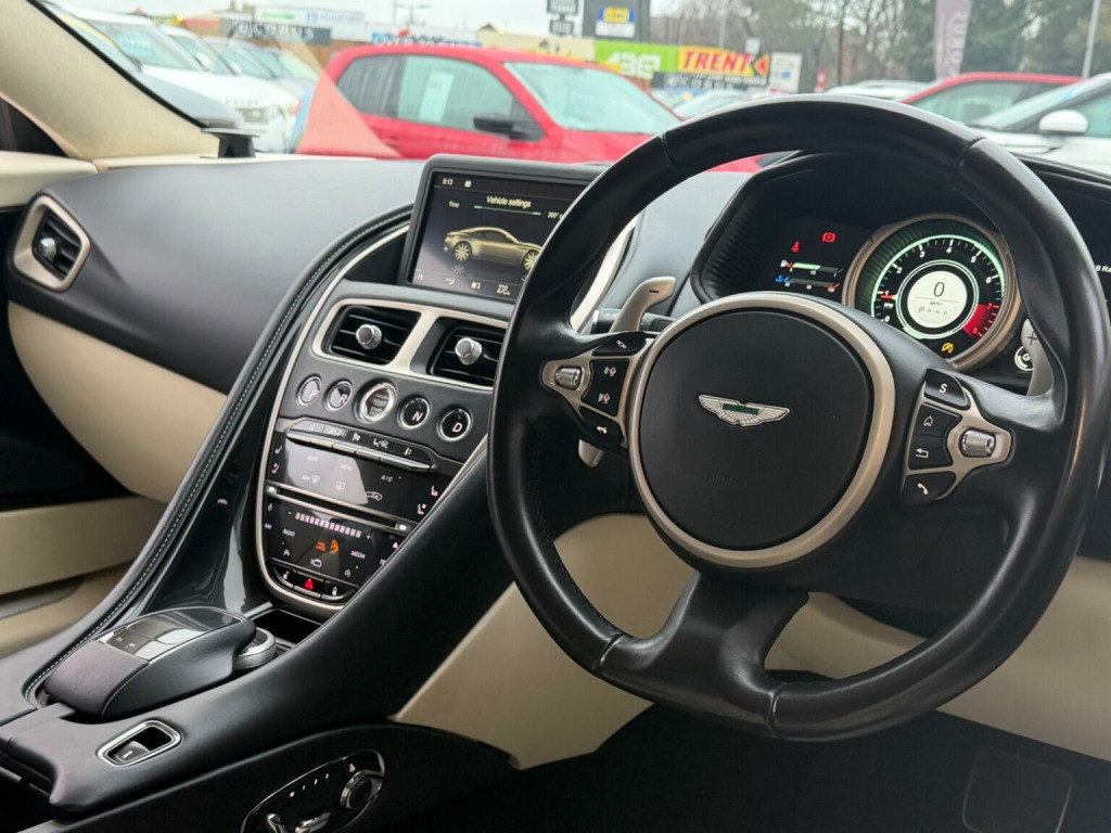 This 2017 Aston Martin DB11 V12 offers an exceptional driving experience, powered by a robust 5.2 litre Euro 6 compliant petrol engine. The interior is designed for comfort and sophistication, featuring automatic temperature control with dual zone climate control, ensuring a pleasant cabin environment for all occupants. Entertainment is provided by the impressive Bang & Olufsen BeoSound audio system, a luxury branded sound system that delivers unparalleled acoustics. Further enhancing the refined cabin are the headrest embossed Aston Martin wings, a subtle yet distinctive touch. The performance of this Aston Martin DB11 V12 is truly remarkable, with an acceleration of 0-62mph achieved in a mere 3.9 seconds. This impressive figure highlights how this vehicle surpasses many others in its class, offering exhilarating speed and responsiveness. The inclusion of yellow brake calipers not only adds a visual flair but also signifies a commitment to performance and stopping power, further distinguishing this exceptional Aston Martin. This car comes with full service history and has just had a fresh service by ourselves and a 200 point health check in our workshop. Included in the preparation we also do a full electronic diagnostic health check with a printout for peace of mind. We have also had the car through our bodyshop for inspection and quality checks and we have just had the car ceramic coated with a 5years ceramic coat , All our cars come fully valeted including a full polish and wax. Please contact a member of our team to arrange a private viewing appointment at our forecourt in Retford, Nottinghamshire . With all main dealership facilities, we offer extremely competitive part exchange prices, finance options and nationwide delivery at a time convenient to you!, # Every Vehicle comes with 3 months warranty as standard and breakdown cover and a full Hpi Certificate # please check specifications prior to purchase