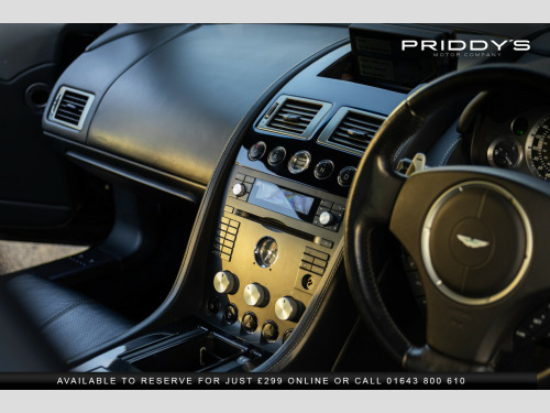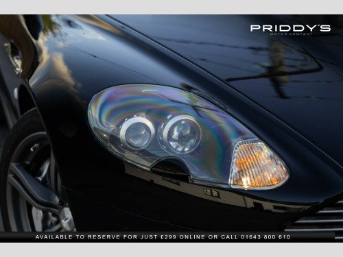 ** This vehicle has recently passed our meticulous pre-purchase inspection and has now arrived on site, where it has undergone a second detailed assessment and extended test drive. The photographs capture the car exactly as it arrived — already presenting beautifully, as only the finest examples ever make it into our selection. It is now undergoing final preparation behind the scenes and will require only light finishing touches before being ready for handover. Given its superb condition and desirability, we recommend reserving early to secure it ahead of other discerning buyers **, , , , Priddys motor company are excited to offer this attractive Aston Martin DB9 to the market. Finished in metallic Black its a stunning piece of British engineering and in our opinion fast approaching Classic status and it offers buyers the chance to get a slice of the Aston Martin experience. Theres nothing better than hearing the legendary V12 soundtrack come to life as you dab the throttle and awaken what lies beneath the bonnet. , There has never been a better time to put your hard earned cash into a future classic, with this beautiful DB9 V12 being no exception. There is something very satisfying being able to own such a prestigious British built Aston Martin, enjoying the drive on a weekend treat knowing that your vehicle isnt depreciating at a alarming rate if anything even rising in value. With EV on the horizon vehicles such as our example are now becoming investment opportunities but they must without doubt have all the attributes our car possesses. , Service history is the holy grail with these cars are we can confirm that our car has probably one of the the more impressive service portfolios youll find on any DB9 for sale today. Its been serviced 13 times by Aston Martin Main dealers and Specialists over its life and you just know this car has been cared for as it it was a family member. Currently showing 63,167 miles with the service team here at Priddys giving it a fresh service including plugs and full vehicle inspection at the current mileage. Tyres are premium Pirelli across both axles with good tread depths, discs and pads are in good condition with plenty of pad sitting on healthy discs. , Bodywork is also an important area to consider as these cars can suffer from corrosion that often goes by many years without being spotted but after a very detailed inspection prior to purchase we can confirm it is clear from any corrosion, shut lines are immaculate, interior showing very little signs of age, it is clear to see this car has been loved/cherished and meticulously maintained and if you popped a private plate on the car it could easily pass for a car 10yrs younger. , Internally the car has all the options youd see on an Aston Martin in 2008, heated electric memory seats, air con, sat nav, power fold mirrors, cruise control, leather dash and Alcantara/suede headlining, pdc front and rear, fixed paddle shifters, its a nicely appointed and beautifully executed car of its era. , Externally the metallic Black paintwork is in excellent condition, the 19 inch alloys fill the arches perfectly, add to this the stunning lines of the DB9 and youve a car that should make DB9 enthusiasts very interested. , On the road the car performs very well indeed, the 6 litre V12 giving you a huge 450 bhp delivered through the smooth 6 speed auto box, handling is confidence inspiring and exhaust note compliments all 12 cylinders letting everyone know this is a classic monster, you may even come back from your test drive feeling just a little 007. , , Why Buy from Priddys Motor Company, , , Excellence isnt optional — its standard.