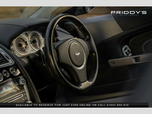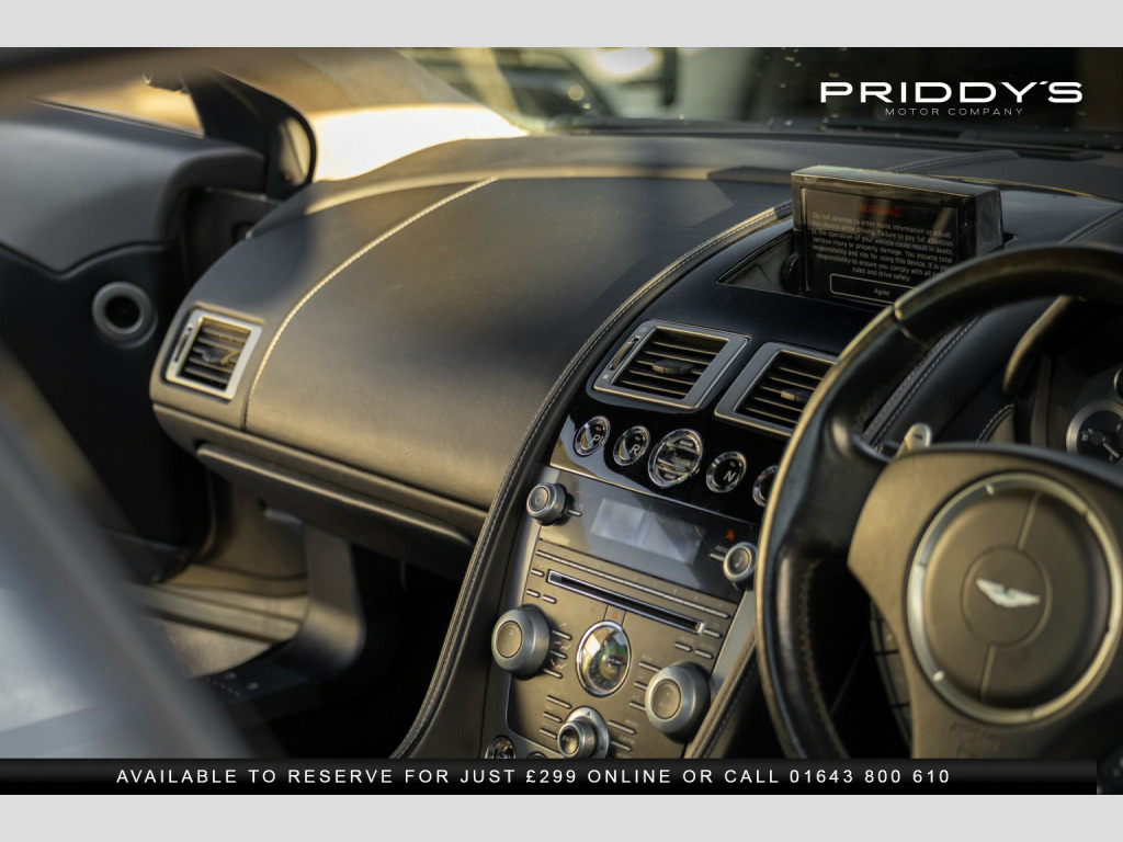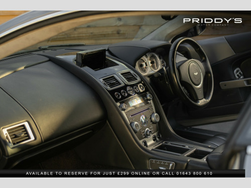 Priddys Motor Company are proud to present this Aston Martin DB9 6.0 V12 Coupe—an exquisitely engineered grand tourer delivering that unmistakable blend of British elegance, V12 theatre and long-legged GT refinement. With just 44,211 miles, this example offers the perfect balance of performance, luxury and timeless design. , Beneath the bonnet sits Aston Martins hand-built 6.0-litre naturally aspirated V12, producing 510 hp and paired with the seamless T-Tronic II automatic transmission. Power delivery is smooth and muscular, and the soundtrack is everything you would expect from a traditional Aston—rich, resonant and deeply characterful. Carbon ceramic brakes complete the package, offering powerful, consistent stopping with superb feel. , The interior showcases the craftsmanship that defines the DB9s charm. Black leather with white contrast stitching creates a crisp, tailored atmosphere, while the heated electric memory seats set the tone for refined comfort on every journey. The leather-wrapped dashboard, sculpted cabin design and analogue Aston Martin clock all contribute to a cockpit that feels as special today as it did the day it left the factory. Cruise control ensures relaxed motorway travel, further enhancing the cars grand-touring ability. , Visually, the DB9 remains one of the most elegant and recognisable silhouettes in modern motoring. Its clean proportions, distinctive grille and beautifully sculpted lines come together in a design that has aged effortlessly. The car sits on a matching set of Pirelli P Zero tyres, each with reassuring tread depth, complementing its confident and composed driving character. , Effortlessly sophisticated, beautifully engineered and richly engaging—the DB9 is a grand tourer for those who appreciate authenticity, craftsmanship and presence. A car that makes every drive feel significant, from a Sunday morning run to a cross-country escape. , Tyres & Brakes: Matching Pirelli P Zero tyres all round with strong tread; carbon ceramic brakes offering decisive stopping performance. , , *Why Buy from Priddys Motor Company*, , *Carefully Selected Vehicles*