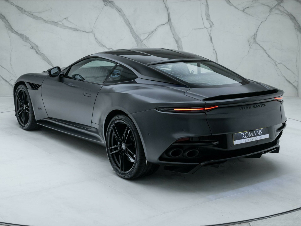 Finished in Q Satin Xenon Grey Paint with Obsidian Black Leather - Desirably Equipped with Carbon Tinted Gloss Black Body Pack & Q 2x2 Twill Gloss Carbon Roof - Comprehensive Aston Martin Service History - Supplied with Romans International Platinum Warranty - Satin Paint Protection Film (PPF) Applied to Whole Car - UK SuppliedOptional Extras:21-Inch Forged Twin-Spoke Textured Black Alloy WheelsQ Satin Xenon Grey PaintCarbon Tinted Gloss Black Body PackQ 2x2 Twill Gloss Carbon RoofQ 2x2 Twill Gloss Carbon Roof StrakeQ 2x2 Twill Gloss Carbon Fibre Wheel Centre CapsApple CarPlayPower Seat BolstersGarage Door OpenerQ Dark Chrome & Carbon Fibre Interior JewelleryQ Satin 2x2 Carbon Twill Trim InlayObsidian Black Caithness Leather InteriorBlack Leather & Black Alcantara Sports Steering WheelAston Martin Wings Embroidered on SeatsSeat Back to Match Trim InlayQ Machined Carbon Fibre Wings BadgingMatt Black Exhaust FinishersSmoked Rear LampsSatin Paint Protection Film (PPF) Applied to Whole CarStandard Features:Carbon Ceramic Brake DiscsCarbon Fibre Front SplitterCarbon Fibre Rear DiffuserCarbon Fibre Rear Spoiler BladeDAB & AM/FM RadioFront & Rear Parking SensorsHeated Rear ScreenIntegrated Satellite Navigation SystemMemory & Heated Front SeatsQuad Exhaust with Matt Black FinisherTouchtronic III ZF 8-Speed Automatic TransmissionTyre Pressure Monitoring System. 21-Inch Forged Twin-Spoke Textured Black Alloy Wheels, Q Satin Xenon Grey Paint, Carbon Tinted Gloss Black Body Pack, Q 2x2 Twill Gloss Carbon Roof, Q 2x2 Twill Gloss Carbon Roof Strake, Q 2x2 Twill Gloss Carbon Fibre Wheel Centre Caps, Apple CarPlay, Power Seat Bolsters, Garage Door Opener, Q Dark Chrome & Carbon Fibre Interior Jewellery, Q Satin 2x2 Carbon Twill Trim Inlay, Obsidian Black Caithness Leather Interior, Black Leather & Black Alcantara Sports Steering Wheel, Aston Martin Wings Embroidered on Seats, Seat Back to Match Trim Inlay, Q Machined Carbon Fibre Wings Badging, Matt Black Exhaust Finishers, Smoked Rear Lamps, Satin Paint Protection Film (PPF) Applied to Whole Car.