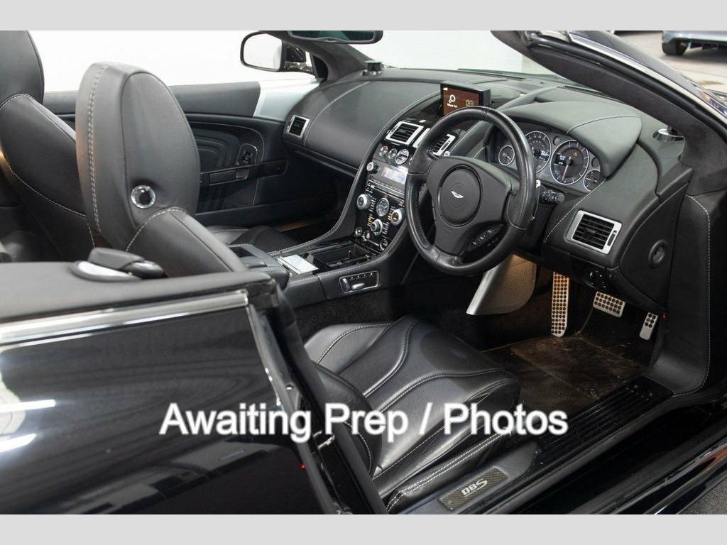 2011, Aston Martin DBS Volante 6.0 V12, Finished in metallic Showing just 43697 miles, FULL Aston Martin service history, Finished in Carbon black metallic paint with black interior, Specification includes, 20" gloss black diamond cut alloys with carbon ceramic brakes and black brake calipers, Front and rear parking sensors, Carbon exterior pack including front splitter, door mirror arms, Piano black interior trim, Door trims, Bang and Olufsen sound system, Electric heated black leather seats with memory function, contrast stitching and DBS logo, Perforated black multi function steering wheel with paddles, Cruise control, Electric heated folding door mirrors, Adjustable damper settings, Silver mesh bonnet vents, Sports driving mode, Satellite navigation, CD player, Bluetooth connectivity, A/C, Wind deflector, Car cover and charger. All vehicles offered at BAM Specialist cars benefit from a level of preparation rarely seen in the motoring industry with all cars being meticulously detailed, stage polished and are subject to a multipoint check prior to sale., We also offer our own BAM in house 3 month comprehensive warranty to ensure the highest level of aftersales care with an optional warranty offered thereafter.