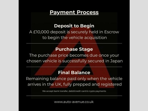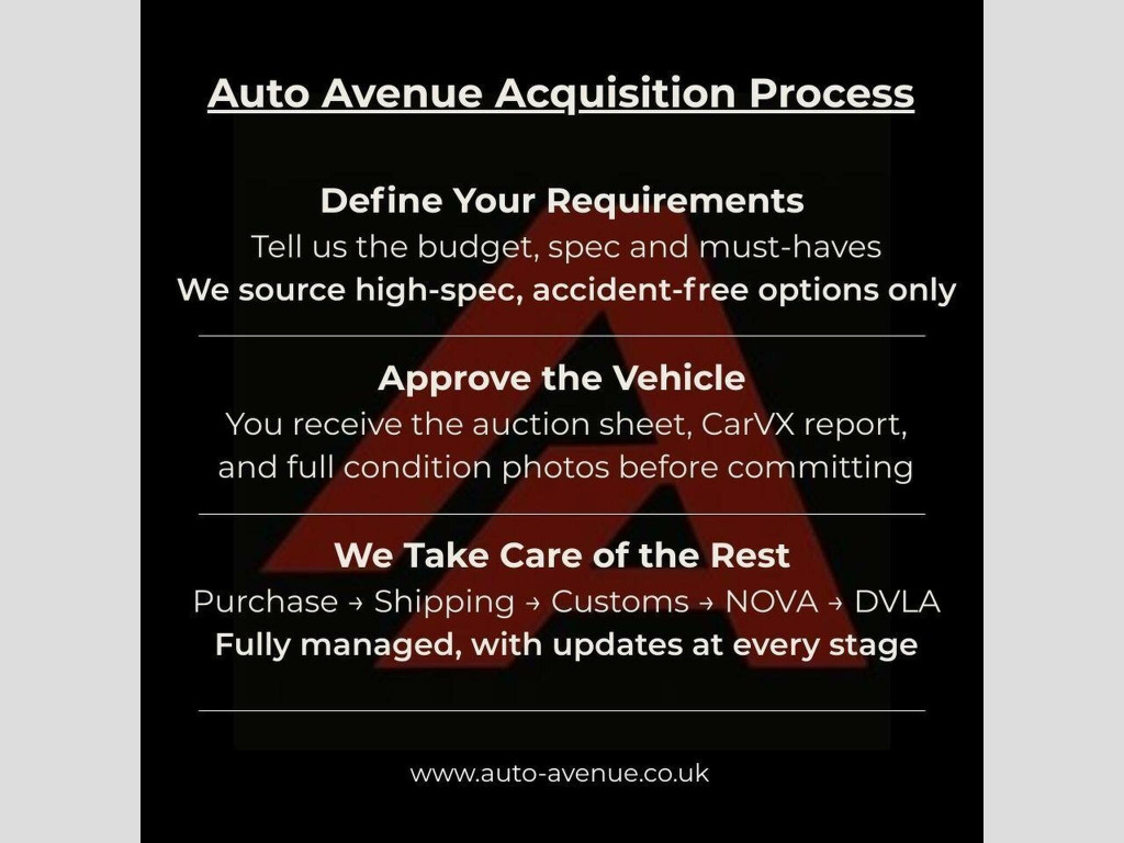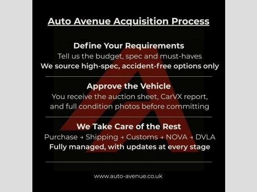 We offer a full sourcing service for the 2022 Aston Martin DBX V8, securing the exact colour, interior, mileage and specification you require. Through our trusted network, we source clean, accident-free examples and manage the entire process from purchase to UK registration. All costs — overseas purchase, export, shipping, duty/VAT, UK compliance, detailing and inspection — are included in your quoted sourcing price with no hidden fees. Payment Process:, • £10,000 deposit held in Escrow to begin sourcing, • Full purchase price due once your chosen Aston Martin DBX is bought in Japan, • Final payment only when the car is prepped, registered and ready in the UK, • Payment available via bank transfer or Escrow, Lead Times:, • 2–3 weeks to locate and secure the desired spec, • 1–2 weeks to load for transport, • 40–50 days shipping to the UK, • ~3 weeks for DVLA registration & compliance, Total: approx. 10–14 weeks, Our Sourcing Procedure:, • Detailed spec matching (options, colour, wheels, interior), • Verified vehicles only — VIN checks, inspection reports, service history, • Secure overseas purchase & controlled logistics, • All customs, NOVA and duty/VAT handled on your behalf, • UK compliance checks & IVA where required, • Full 117-point inspection, diagnostic scan & professional detailing, • Free nationwide delivery or collection included, Warranty:, Every sourced DBX qualifies for up to 3 years third-party warranty. Contact Auto Avenue Birmingham to begin your order and secure your Aston Martin DBX V8.