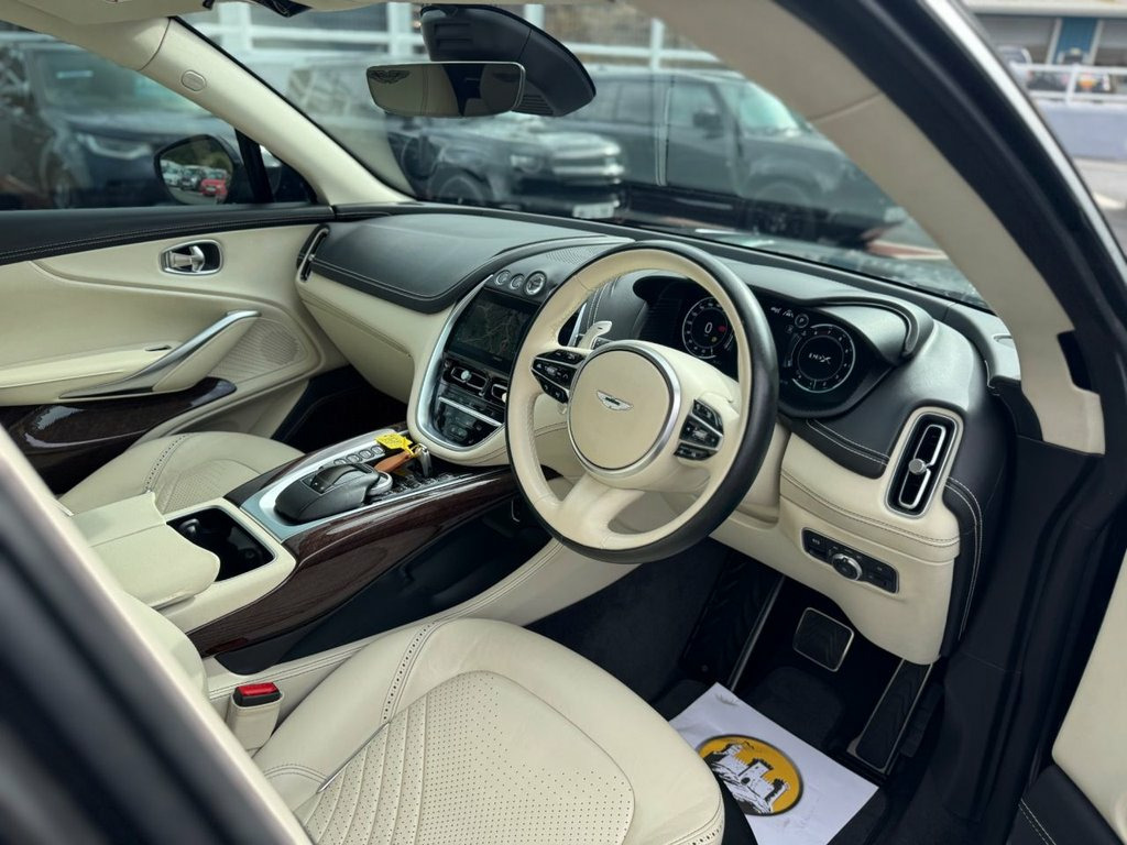 DBX 4.0 550 V8 Bi-Turbo AWD. 2021MY in Metallic Xenon Grey Special contemporary paint with thousands in options. Ivory Caithness leather, DB Elegance Package, 22 inch Satin Black Diamond Turned wheels, Q-Stitched & Embroidered Quilted seats with AM Wings, adjustable satin Chrome bonnet blades, Park Assist with 360 surround view cameras, Painted brake calipers, 16-way electric adjustable seats, heated & ventilated seats front & rear, privacy & acoustic double glazed glass, Convenience Pack, extended trim inlays, Homelink Wireless Control, leather headlining, Mirrored stitch seat detailing, power tailgate with gesture control, touch pad control, smoke tail lights, Designer Keys, DuoTone comfort heated steering wheel, plus already high standard specification of panoramic glass roof, Bi-LED headlights, electronic adaptive dampeners, adjustable drive modes, satin chrome roof rails, ambient lighting, Satin Chrome interior brightwear & much more. Stunning spec DBX covered 45,500 miles with AM service record (4 services ) then recently serviced by ourselves 22in Alloy Wheels - Silver Sport, ABS - Anti Lock Braking System, Airbag - Dual-Stage Driver, Auto Park Brake Hold, Blind Spot Monitoring, Bonnet Vents - Matte Black Mesh, Boot Carpet - Black, Brake Calipers - Dark Anodised, Cabin Carpet - Primary, Convenience - Aston Martin Key, Convenience - Rotary Dial, EBA - Emergency Brake Assist, Electric Parking Brake, Electronic Stability Control - ESC, Exterior Pack - Body Colour Lower, Exterior Pack - Satin Chrome Upper, Front Electric Windows, Headlining - Alcantara Inclusive, Hill Descent Control - HDC, HSA - Hill Start Assist, Infotainment - Aston Martin Premium Audi, Interior Jewellery Pack - Satin Chrome, Keyless Entry, Pack - 1913 Specificati