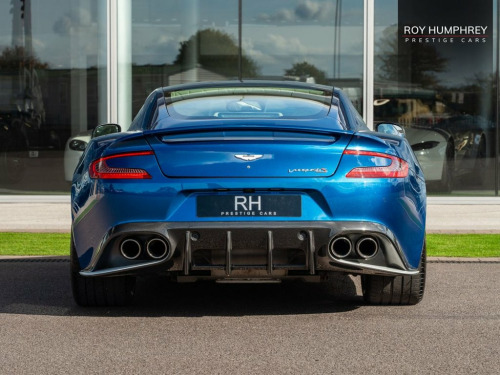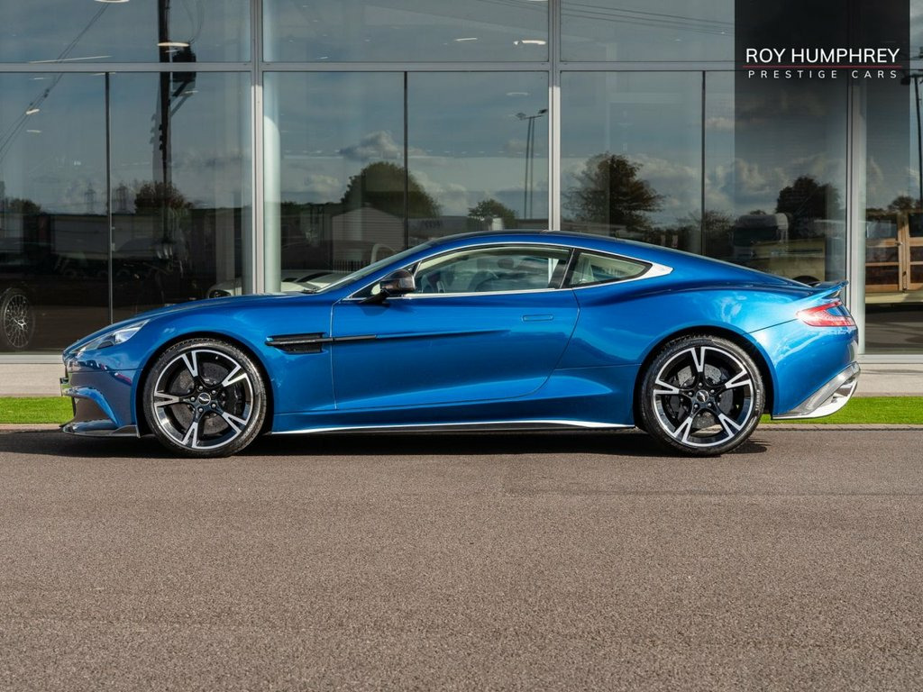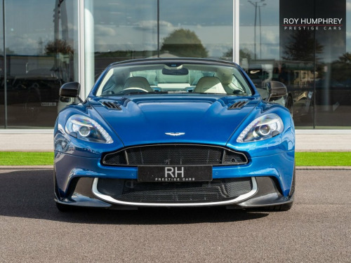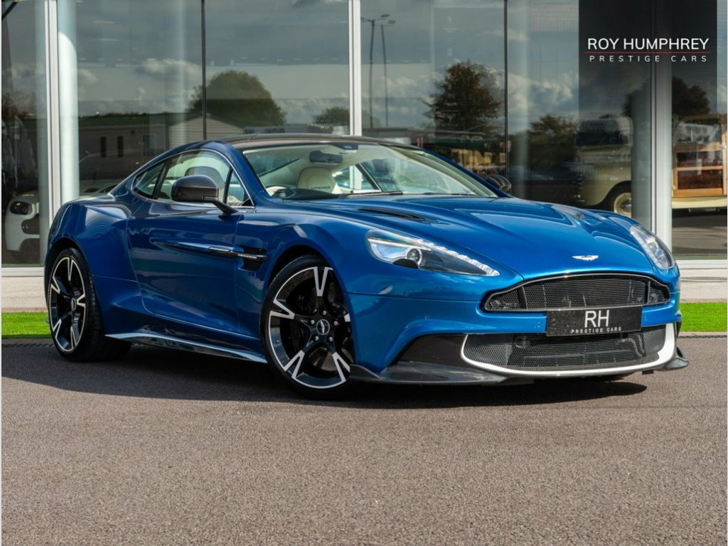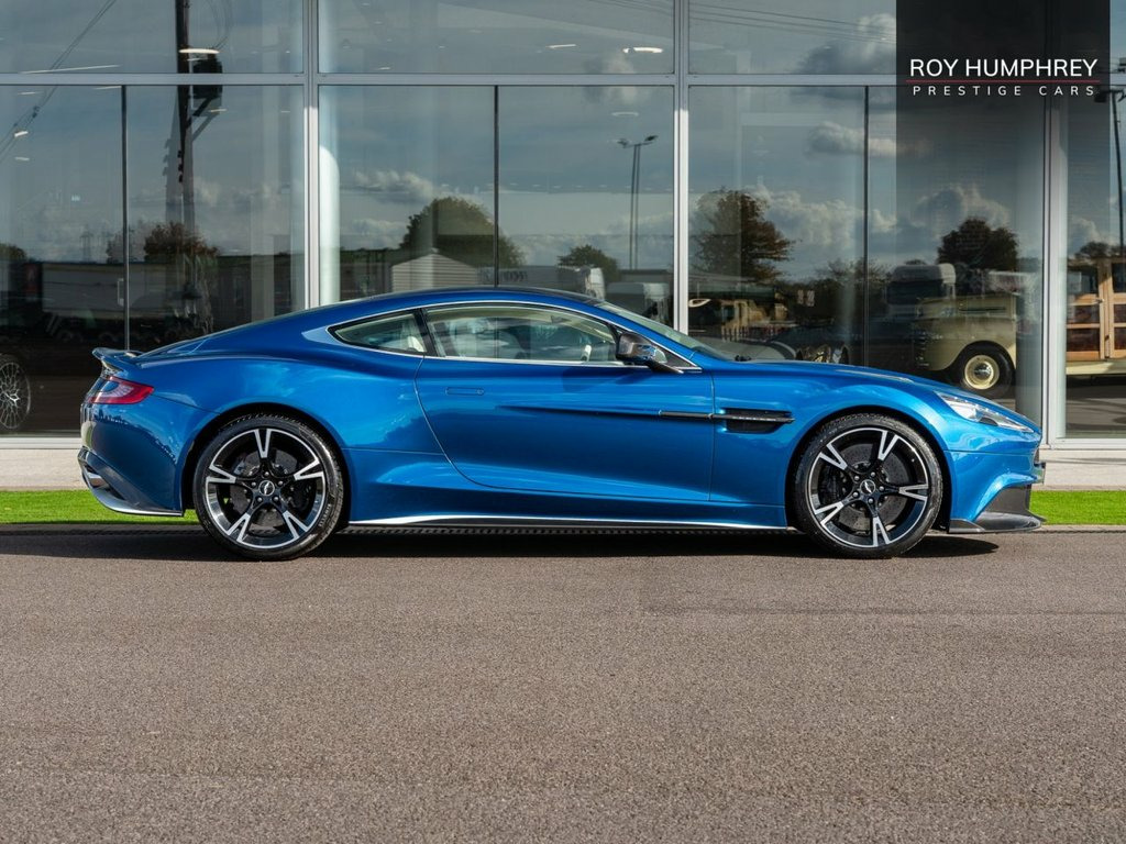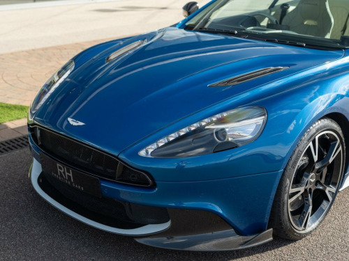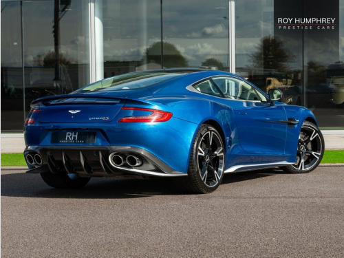 2017 Aston Martin V12 Vanquish S finished in Metallic Blue with Ivory leather interior with blue contrast stitching. Further specification includes but is not limited to, Carbon Fibre Bonnet Vents | Black Brake Calipers | Contemporary & Luxury Pack | Exterior Carbon Pack | Full Length Satin Forged Carbon Fascia Trim Inlay | V12 Side Fender Badges | Shadow Bronze Interior Jewellery Pack | Internal Shadow Pack | Gloss Carbon Fibre Mirror Caps | Gloss Carbon Fibre Roof Panel | Blue Seats Belts | Ventilated Sports Seats | 2x2 | Twill Gloss Carbon Side Strakes, One-77 Full Leather Steering Wheel and 20 Inch 5 Spoke Gloss Black Lightweight Diamond Turned Wheels