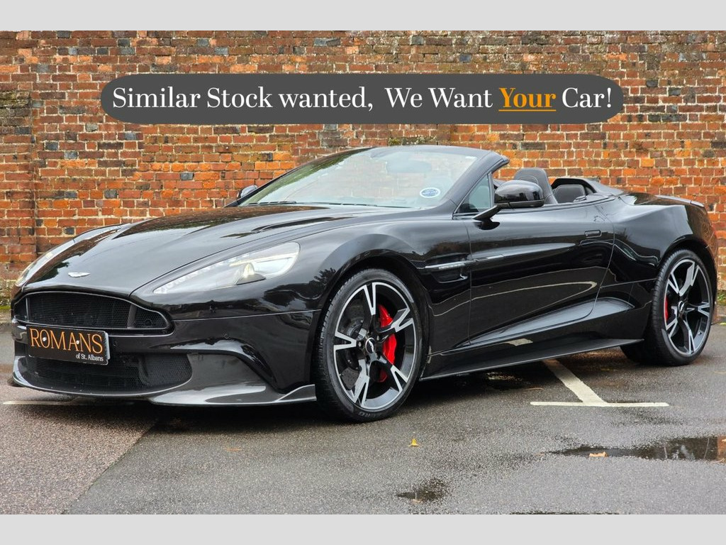 SOLD SIMILAR CARS WANTED FOR STOCK Romans of St Albans are delighted to present to you this ultra rare, Aston Martin Vanquish Volante - with a huge spec, Front end PPF, Gtechniq Ceramic Coating, and Full Aston Martin service history. Here are some of the optional extras: Ventilated Seats, Apple Car Play/ Android Auto, 5 Spoke Lightweight wheels, Side Strakes in Carbon, Shadow Pack, Contemporary Pack, Facia Trim Carbon, Black Mesh with carbon surround, PPF, Aston Martin umbrella, Wind Deflector, 1-77 Style Steering Wheel, Aston Martin Embroided seats, Bonnet vents in carbon and much more. .FINANCE AVAILABLE. A £299 admin fee applies to third party finance companies being used. ULEZ COMPLIANT. FREE ON-SITE PARKING (ASK FOR DETAILS.) Romans after care package includes: Romans warranty for 6 months (12,24 & 36 months are available), Main dealer cover available, Free breakdown cover for warranty duration, Full Romans service prior to delivery, 84 point vehicle inspection, 12 months MOT, Free Lifetime MOT when servicing with us (ask for details), Total value of package: £2000 - ALL INCLUSIVE IN THE PRICE. All of our clients have the added peace of mind that we have our own workshop facilities with free courtesy cars. Part Exchange very welcome, nationwide delivery also available. To avoid a wasted journey we highly recommend making an appointment, so call us now to get yours booked! Romans provide the highest of quality vehicles, and have at least 80 cars in stock a Stitching and Welt - Contrast, Vanquish S Rear Badge, Detailing - Embroidery - Aston Martin Wi, Polished Aluminium Fuel Filler Cap, Black Mesh with Carbon Surround, Paint Protection Film - Standard, Bonnet Vents - Gloss 2x2 Twill Carbon Fi, Black Meshes, Window Surround Finisher - Matte Black , Automatic Dimming Interior Rear View Mir, Side Strake - 2x2 Twill Gloss Carbon, Steering Wheel 1-77 Style Colour Keyed, Shadow Pack, Contemporary Pack, Functional - Umbrella and Holder, Facia Trim - Full Length Twill Carbon, Wind Deflector, Seating - Front Ventilated, Brake Calipers - Black Painted, 5 Spoke Gloss Black DT Lightweight - 433, 2+2 Seating Arrangement, 20in Alloy Wheels - 5 Spoke Gloss Bl