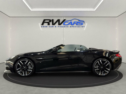 Aston Martin Vanquish V12 Volante – 568 BHP | Registered: 25/03/2017 - Engine Number: AM29/45020 This stunning Aston Martin Vanquish V12 Volante is presented in Oryx Black and features 20" 10-Spoke Gloss Black Diamond Turned Alloy Wheels, giving it a commanding road presence. The interior is finished in Obsidian Black Leather with silver stitching, Shadow Bronze Jewellery Pack, and Piano Black Interior Trim Pack, creating a luxurious and performance-focused cabin atmosphere.Having covered just 13000 miles, this immaculate example has been carefully maintained and boasts an outstanding specification, making it a truly exceptional offering for collectors and enthusiasts alike. Service History: 1,699 miles – Aston Martin Mayfair 4,100 miles – Aston Martin Mayfair 4,100 miles – Aston Martin Mayfair 5,019 miles – Aston Martin Mayfair 6,384 miles - Aston Martin Nottingham 8,820 miles - Aston Martin Nottingham 11,430 miles - Aston Martin Nottingham Optional Extra: Brake Calipers: Grey Contemporary Pack Exhaust Tailpipe Finisher: Black Textured Exterior Black Pack Exterior Door Handles: Painted Exterior Door Release Facia Trim: Full-Length Twill Carbon Front Fender Badges: V12 Side Fender Badges Front Grille: Black Vaned Fuel Filler Cap: Polished Aluminium Interior Finish: Shadow Bronze Jewellery Pack Interior Hardware Pack: Piano Black Interior Rear View Mirror: Garage Door Opener with Auto-Dim Internal Shadow Pack Meshes: Black Mirror Caps: 13 Speakers, 2+2 Seating Arrangement, 20in Alloy Wheels - 10 Spoke Flow Cast w, 3 Stage Adaptive Damping, 6.5in LCD Screen, ABS - Anti Lock Braking System, Airbag - Curtain Side Head, Airbag - Dual-Stage Driver, Airbag - Dual-Stage Front Passenger, Airbag - Pelvis and Thorax Seat Mounted, Alarm, Aluminium/Magnesium Alloy and Carbon Fib, Aston Martin Tracking by Cobra, Automatic Temperature Control, Bang & Olufsen BeoSound Audio, Bi-Xenon Headlights, Black Round Wheel Full Leather - Std Sti, Bluetooth Telephone Preparation, Brake Calipers - Anodised Black, Bright Finish Grille, Bright Tailpipe Finisher, Centre Stack Rotaries - Satin Chrome, Chrome Side Strakes and Tailpipe Trim, Cruise Co