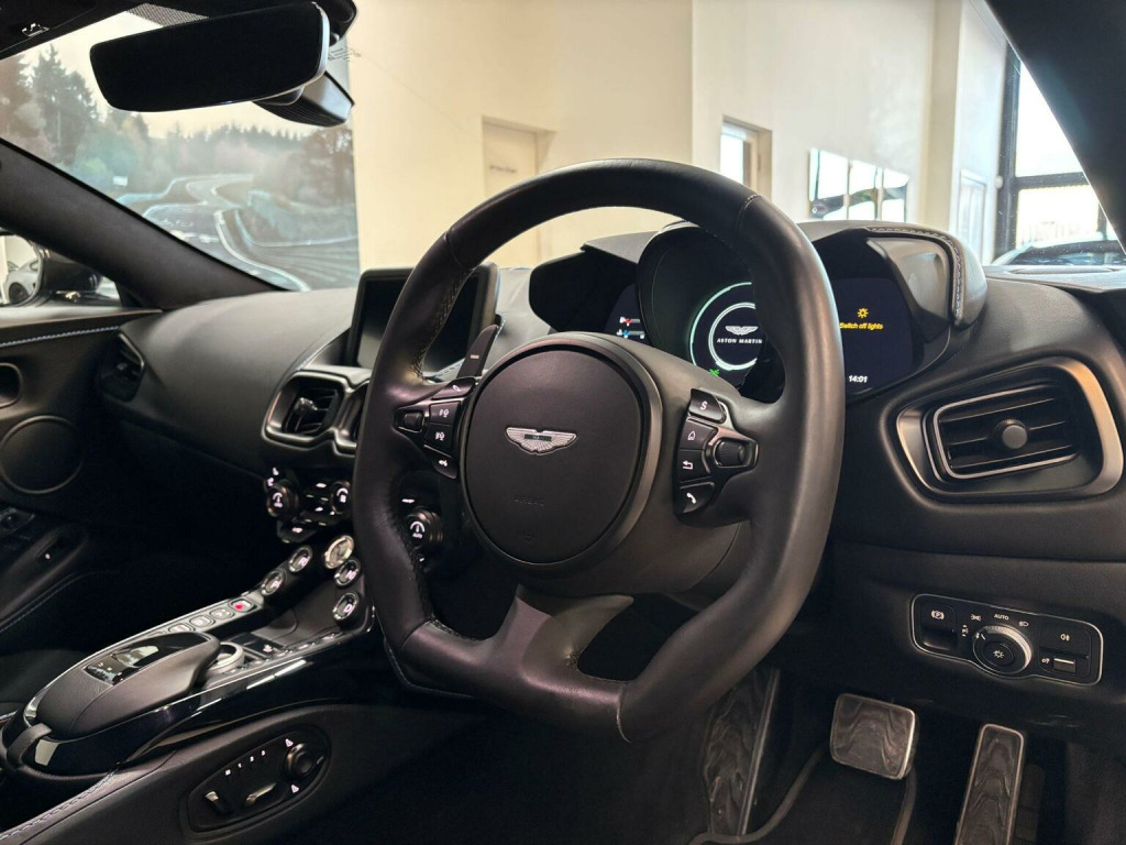 October 2020 70 Aston Martin Vantage 4.0 V8 Auto finished in a timeless combination of Onyx Black Metallic with Obsidian Black leather interior and blue contrast stitching. 25950 miles covered which is backed up by excellent annual Aston Martin main dealer service history. Services completed as follows: 2021 - Aston Martin Cheltenham (8079 miles), 2022 - Aston Martin Brentwood (14540 miles), 2023 - Aston Martin Birmingham (19880 miles), 2024 - Aston Martin Birmingham (22651 miles) and October 2025 - Aston Martin Nottingham (24696 miles). Supplied with all correct documentation, handbooks etc and this car has been subjected to our usual strict pre delivery inspection and preparation process ensuring all cosmetic and mechanical elements are in good order including 4 Bridgestone tyres. This Vantage is boasting a fantastic spec with an incredible list of desirable optional extras fitted from new, totalling over £24000 in options alone and a list price of almost £150,000. This options list includes: Comfort Pack (inc 16 Way Seat Adjustment, Heated Seats, Closed Stowage and Armrest), Sports Plus Collection, 20in Alloy Wheels - Lightweight Forged, Infotainment - Aston Martin Premium Audio, Exterior Body Pack - Gloss Black, Exterior Black Pack, Brake Calipers - Vivid Blue, Seat Heating-Cooling - Ventilated Seats, Caithness Leather - Obsidian Black, Tread Plates - Aluminium, Embroidered Wings Logo, Bonnet Vents - Matte Black Mesh, Privacy Glass, Rear Diffuser Insert and Blades - Body Colour, Interior Jewellery - Dark Chrome, LED Tail Lights - Smoked and Umbrella and Holder. , DELIVERY: Nationwide delivery available. The first 100 miles are free of charge (driven delivery). Thereafter, delivery is charged at £1.99+vat per mile. Please contact us for further details or a personalised quotation including trailered delivery options. , PAYMENT: We accept debit card payments for amounts up to £500. For payments exceeding this amount, we accept BACS (bank transfer) only. Please ensure that funds have cleared prior to vehicle collection as we are unable to release vehicles without cleared funds.If you intend to pay via online banking on the day of collection, please bring any necessary devices or security tools (e.g. secure keys, card readers, etc.) required to complete your transfer. We also accept cash payments up to £9,000, subject to a 2% banking fee. Please note that a £250 administration fee applies to all purchases funded through third-party finance providers. , NOTICE: Every effort is made to ensure the accuracy of our advertisements and vehicle specifications. However, occasional human or system errors may occur. We therefore recommend verifying all details prior to purchase.