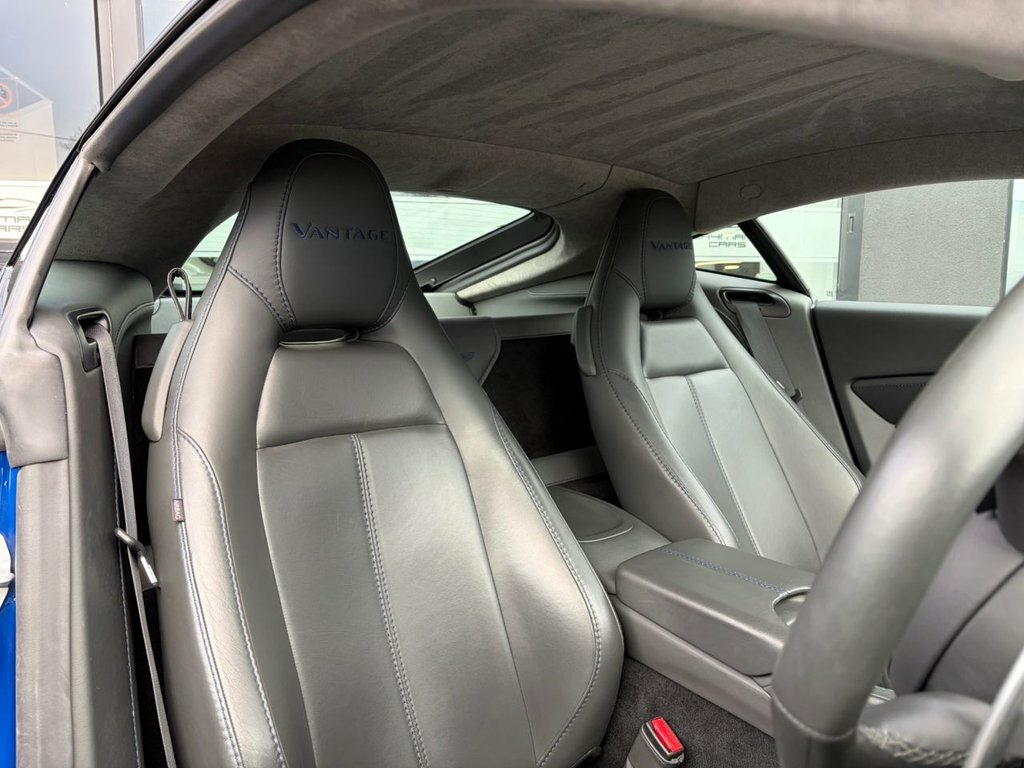 PER4MANCE CARS ARE DELIGHTED TO OFFER THIS HUGE SPEC ASTON MARTIN VANTAGE 4.0 V8 COUPE AUTO (510PS0 WITH OVER £26,000.00 OF FACTORY OPTIONS!! FINISHED IN ASTON MARTIN SPECIAL "Q" PAINT ZAFFRE BLUE WITH FULL PHANTOM GREY LEATHER, AND 20" LIGHTWEIGHT FORGED GLOSS BLACK AND DIAMOND TURNED ALLOY WHEELS. THIS STUNNING CAR HAS A FULL MAIN DEALER ASTON MARTIN SERVICE RECORD. THE EXTENSIVE OPTION LIST INCLUDES - EXTERIOR PACK GLOSS BLACK, CONTRAST STITCHING, CONTEMPORARY ALACANTARA HEADLINING, LEATHER COLOUR PALETTE, TREADPLATES ALUMINIUM, VANTAGE LOGO EMBROIDERY TO SEAT BACKS, ASTON MARTIN WINGS EBROIDERY, Q EXCLUSIVE PAINT "ZAFFRE BLUE", HEATED SEATS, EXHAUST TAILPIPE FINISHER MATT BLACK, ROOF PAINTED GLOSS BLACK, SIDE GILL MATT BLACK PERFORATED, LEATHER SPORTS STEERING WHEEL, CONVENIENCE TOUCH PAD, 20" FORGED GLOSS BLACK/ DIAMOND TURNED ALLOYS. FOR FURTHER INFORMATION ABOUT THIS INCREDIBLE CAR, CONTACT OUR EXPERIENCED SALES TEAM TODAY ON 0333 988 7777 OR EMAIL [email protected]. SOME VEHICLES MAY BE KEPT OFF SITE SO PLEASE CALL TO ARRANGE VIEWING. EXTENDED WARRANTY AND TAILORED FINANCE PACKAGES AVAILABLE ON REQUEST. 20in Alloy Wheels - Vantage - Y Spoke - , ABS - Anti Lock Braking System, ADS - Adaptive Damping System, Airbag - Dual-Stage Driver, Airbag - Dual-Stage Front Passenger, Alarm and Immobiliser, Automatic Temperature Control with Dual , Boot Carpet - Black, Brake Calipers - Dark Anodised, Cabin Carpet - Black, DSC - Dynamic Stability Control, DTV - Dynamic Torque Vectoring, Door Mirror Caps - Exterior Body Coloure, Door Mirrors - Heated and Electrically R, EBA - Emergency Brake Assist, EBD - Electronic Brakeforce Distribution, Electric 8-way Adjustable Seats, Electric Parking Brake, Electric Power Assisted Steering, Electrically Controlled Exhaust, Electronic Differential - E-Diff, Embroidery