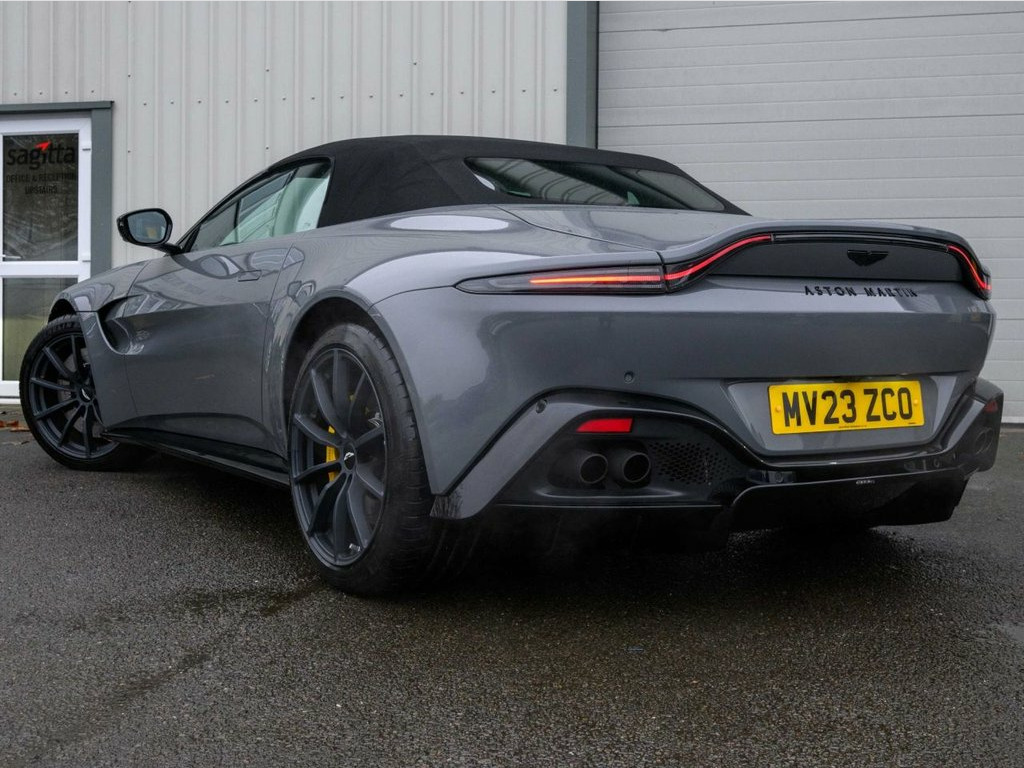 Sagitta is delighted to present for sale this stunning 2023 Aston Martin Vantage 4.0 V8 Roadster Automatic in China Grey with a Full Black Haircell Leather Interior, the car benefits from the following specifications, Satellite Navigation System, Reversing Camera, Bluetooth, Voice Control, Park Assist, 360 Camera, Electric Sports Plus 16 Way Memory and Heated Front Seats, Apple Car Play, Keyless Entry, Cruise Control, Blind Spot Monitoring, Gloss Black Interior Trim, Obsidian Black Rokona Headlining, Interior Accelerate Monotone, Aston Martin Tracking System, 20" Lightweight Forged Alloy Wheels with Yellow Callipers, Gloss Black Exterior Pack both Upper and Lower, Vaned Front Grille, Exterior Badging-Aston Martin Black Wings and Script, Smoked Tail Lights, Sports Exhaust, PPF Ceramic Coating, 5 Year Service Pack with Aston Martin, Under Aston Martin Manufacturers Warranty till May 2026, car was £160,830 NEW. More photos are available on our website, Part Exchange Welcome. Nationwide delivery is available, please contact us for a quote. Deposits can be taken over the phone. Payments can be made via bank transfer and Finance applications can be completed online. Whilst every effort is made to ensure the above details are correct, there may be some discrepancies, so please make sure to contact us for exact specifications and history on this vehicle. The vehicle specification displayed may not be exact for this vehicle. Please contact us to confirm the precise specific 20in Alloy Wheels - 10 Spoke Silver, ABS - Anti Lock Braking System, Alarm and Immobiliser, Base Floor Mats, Blind Spot Monitoring, Bonnet Vents - None, Brake Calipers - Dark Anodised, Cabin Carpet - Primary, Convenience - Rotary Dial, Decklid Insert - Exterior Body Colour, Door Mirror Caps - Exterior Body Coloure, Dual-Stage Driver and Passenger Front Ai, EBA - Emergency Brake Assist, EBD - Electronic Brakeforce Distribution, Electric 8-way Adjustable Seats, Electric Power Assisted Steering, Electric Steering Column Adjustment and , Exhaust Tailpipes - Quad - Matte Black, Exterior Badging - Aston Martin Enamel W, Exterior Body Pack - Graphite, Exterior Door Handles - Exterior Body Co, Exter
