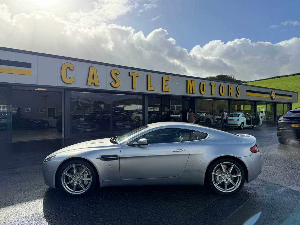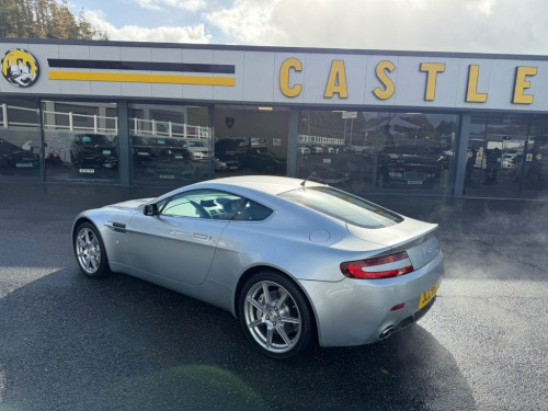 V8 Vantage 4.3 Manual Coupe 380bhp. Metallic Titanium Silver with Phantom Grey leather, coarse contrast stitching, high spec manual V8 with 19 inch Silver alloys, Bright Finish grill, Carbon Fibre entry guards, Navigation, electric seats, climate control. Covered 48,500 miles with excellent service record, complete with invoices, service records, owners manual plus recently serviced before sale including new clutch, slave cylinder and recent brake pads front and rear. Stunning example must be seen to be appreciated 18in 10Spoke Alloy Wheels, Alcantara roof lining- Black, Alcantara roof lining- Ivory, Alcantara roof lining- TaILOrs Grey, Alloy Facia, Anthracite interior fittings, Aston martin Audio System 160W, Black carpets, Deleted badging, Front Passenger Seat isofix location poi
