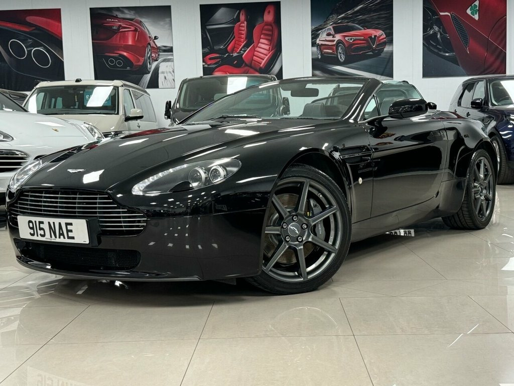 Motor Village Bristol is delighted to offer this low-mileage Aston Martin V8 Vantage Roadster having only covered 47,000 miles with a Comprehensive Service History! The British-built V8 Vantage is an excellent choice! The specifications on this beautiful example include 19" 7 Spoke Alloy Wheels, Sat Nav, Xenon Headlamps, Heated Windscreen, Electric Memory Seats, Electric Folding Door Mirrors, and Black Leather Upholstery. X2 Both remote key fobs & all literature and handbooks are present with the car. Early viewing is highly advised, please call us now to arrange a viewing/test drive to avoid any disappointment! 18in 10Spoke Alloy Wheels, Aston martin Audio System 160W, Black carpets, Deleted badging, Fast track hood- Atlantic Blue, Fast track hood- Black, Fast track hood- Westminster Green, Front Passenger Seat isofix location poi, Gunmetal facia