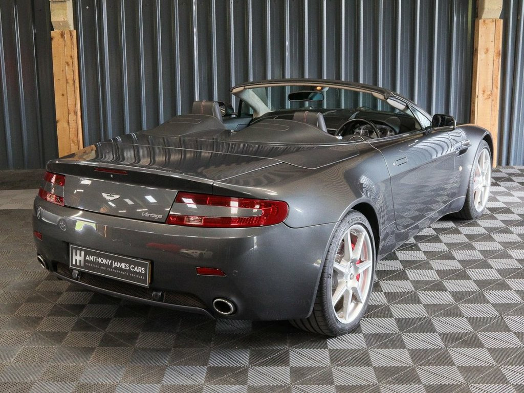 Absolutely spectacular low mileage Aston Martin Vantage V8 Roadster, presented in the iconic colour of Meteorite Silver (£1526), over Hand crafted Obsidian black full-grain leather, Heated (£403), Fast Track Sports seats with three Memory settings (£301). The hand cut and stitched leather continues throughout the interior and dashboard and complemented with Corsa Red contrast stitching (£147) and Gun Metal facias and Taylors Grey Headlining. A wonderful specification, including Bright Finish Grille (£301), HID Levelling Headlights (£505), Dark bonnet Meshes (£301), 19" Seven Spoke Alloy wheels (£1016) completes the iconic Aston Marin looks. Additional specification includes, Auto Dimming Mirror (£97), Bluetooth connectivity (£505), Red Brake calipers (£301), Premium Audio (£1016), Satellite Navigation (£1786), wind deflector (£403), Power Fold Mirrors and a 12 moth fully comprehensive warranty, all that the discerning Aston martin owner would expect. We have had this wonderful example fully inspected by renowned Aston Martin specialist George Edward Aston Martin, and commissioned all work to ensure it is as lovely as it looks, this includes known Aston issues such as all brake flexi-pipes replaced front bearing, a complete service including oil, brake and trans-axle, with all filters and new disks and pads all round. This stunning example also will come with a fully comprehensive 12-month 12 months warranty, Xenon HID Headlights & headLight was, SatNav, Electric Memory Front Seats & door m, Wind deflector, Auto dimming Rear view mirror, Battery conditioner, Fine stitching, Coloured brake calipers, Bright finish grille, 19in 7Spoke Alloy Wheels, 18in 10Spoke Alloy Wheels, Aston martin Audio System 160W, Black carpets, Deleted badging, Fast track hood- Atlantic Blue, Fast track hood- Black, Fast track hood- Westminster Green, Front Passenger Seat isofix location poi, Gunmetal facia