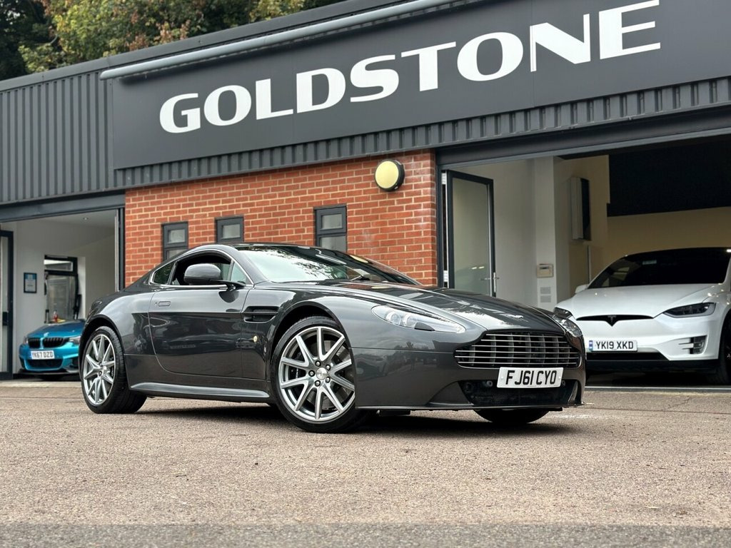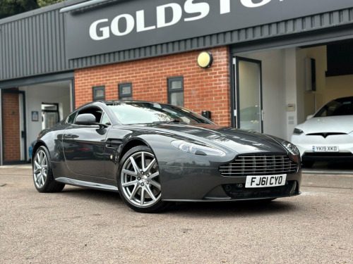STUNNING SPECIFICATION VANTAGE S | THREE TOTAL OWNERS FROM NEW | FULL DOCUMENTED ASTON MARTIN SERVICE HISTORY | CARBON BACKED LIGHTWEIGHT SEATS | CARBON EXTERIOR PACKAGE | APPLE CARPLAY UPGRADE | ALCANTARA HEADLINING | ALCANTARA STEERING WHEEL | 19" FRESHLY DIAMOND CUT ALLOYS WITH MICHELIN 4S TYRES | GLASS KEY | REVERSE CAMERA | BEAUTIFUL CONDITION THROUGHOUT | A TRULY RARE VEHICLE WITH FANTASTIC HISTORY | A DRIVER FOCUSED V8 WHICH SOUNDS AND HANDLES LIKE NO OTHER | 2012 Aston Martin V8 Vantage S Coupe – Goldstone Cars Ltd A striking example of Aston Martin's engineering finesse, this V8 Vantage S represents the perfect balance between elegance and raw performance. Finished in timeless metallic paintwork and presented in beautiful condition throughout, this model has enjoyed careful ownership — just three owners from new — and benefits from a full, documented Aston Martin service history, confirming a life of meticulous care. The Vantage S was designed as the purist's choice within the V8 range, with sharper dynamics, a faster shifting gearbox, and a more visceral connection to the road. Powered by the naturally aspirated 4.7-litre V8, producing 430bhp and a soundtrack that defines the Aston Martin experience, this is a machine built to be driven, not merely admired. This particular example stands out with an exceptional factory specification, complemented by sought-after enhancements: Carbon-backed lightweight seats – rarely specif Reversing Camera, Second Glass Key, Steering Wheel - Black Alcantara, Piano Black Pack, Headlining Alcantara Colour - Contempora, Fine Contrast Stitching, Carbon Fibre Lightweight Seat, Magnum Silver Meshes, Exterior Carbon Pack, Carbon Side Strakes, Bright Finish Grille, Brake Calipers - Black, 19in Alloy Wheels - 10 Spoke Graphite Di, 160 W Aston Martin Audio System, 19in Alloy Wheels - V Spoke Silver Diamo, 3.5mm Auxiliary Audio Input Socket, ABS - Anti Lock Braking System, Airbag - Dual-Stage Driver, Airbag - Dual-Stage Front Passenger, Airbag - Front Occupant Side, Alarm, Aluminium-Magnesium Alloy and Composite , Automatic Temperature Control, Bi-Xenon Headlights, Bluetooth Telephone Pr