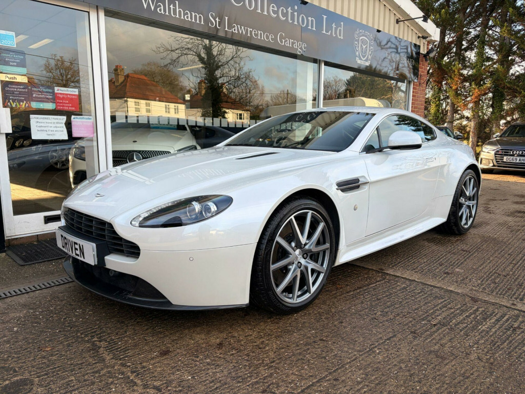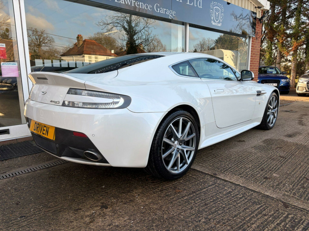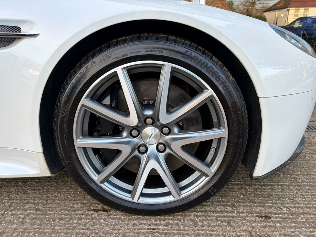 ** NATIONWIDE DELIVERY ** CARBON EXTERIOR PACK ** BLACK MESH GRILLES ** SAT NAV ** 19'' ALLOY WHEELS ** FRONT & REAR PARKING SENSORS ** CRUISE CONTROL ** ELECTRIC SEATS ** FOLDING MIRRORS ** Presented in special order Morning Frost White Pearl with contrasting Obsidian Black ''Vantage S'' embossed full leather interior trim. A stunning example with fantastic service history (8 services). Service to be completed prior to completion of sale. Specification includes satellite navigation with full colour screen, radio / CD player, Bluetooth telephone, front & rear parking sensors, electrically adjustable seats with driver and passenger memory functions, front centre armrest with storage facilty and cup holders, climate control / air conditioning, reach & rake adjustable multi function steering wheel with paddle shift gear change, cruise control, auto bi xenon headlamps, electrically adjustable & folding door mirrors, electric windows, push button start, multi airbags abs brakes, traction / vehicle stability control, tailored carpet mats, remote central locking with alarm / immobiliser function, aluminium door entry scuff plates, exterior carbon pack (front & rear bumper inserts), Black mesh grilles (bonnet & wings), Gloss Black brake calipers, finished with upgrade 19'' diamond cut / polished Graphite alloy wheels (unmarked). Premium Bridgestone tyres fitted all round. Buy with confidence from a long established dealer with fantastic reputation, feedback & reviews. ont parking sensors, 19in alloy wheels - 10 spoke graphite diamond turned, black meshes - bonnet and side strake, full-grain leather - obsidian black, heated front seats, brake calipers - black, exterior carbon pack, 160 w aston martin audio system, 19in alloy wheels - v spoke silver diamond turned, 3.5mm auxiliary audio input socket, abs - anti lock braking system, airbag - dual-stage driver, airbag - dual-stage front passenger, airbag - front occupant side, alarm, aluminium-magnesium alloy and composite and steel body, automatic temperature control, bi-xenon headlights, bluetooth telephone preparation, body coloured door mirrors - heated and electrically retractable, brake calipers - grey, carbon fibre splitter and diffuser, clear rear lights, contrast stitching, cruise control, dsc - dynamic stability control with track mode, eba - emergency brake assist, ebd - electronic brakeforce distribution, electrically adjustable sports seats, embroidered vantage s carpet logo, embroidered vantage s seat logo, extruded aluminium bonded vh body structure, extruded aluminium door side-impact beams, facia trim - piano black, front electric windows, glass ecu, hba - hydraulic brake assist, hsa - hill start assist, halogen projector headlights-main beam, headlights power wash, heated rear screen, high intensity discharge headlights-dipped beam, immobiliser, integrated apple ipod connector, led map reading lights, led rear lights, lamy pen and pen holder, machined black 's' theme tread plates, oel - organic electroluminescent displays, ptc - positive torque control, piano black centre console finish and iridium silver surround, power assisted steering, rear parking sensors, remote control boot release, remote-control central door locking, satellite navigation system, seatbelts - warm charcoal, six-cd autochanger, sports suspension, steering column tilt and reach adjustment, steering wheel - leather sports, tc - traction control, tmc - traffic messaging channel, tracking device, trip computer, tyre pressure monitoring system, tyre repair kit, usb connector, waveform audio format/windows media player and mpeg audio file compatibility