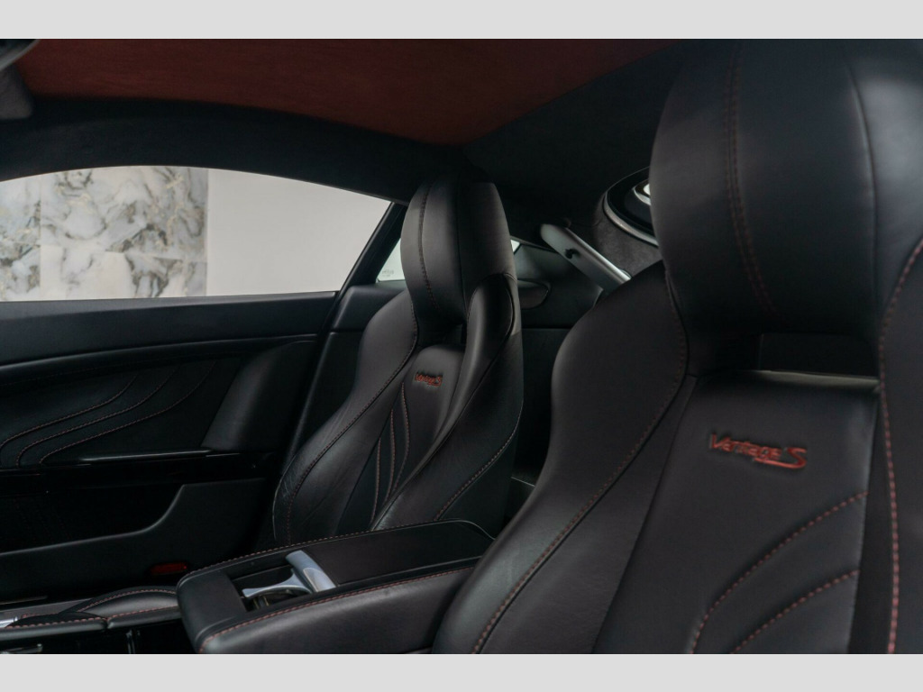 0 w aston martin audio system, 19in alloy wheels - 5 spoke silver wheel, 3.5mm auxiliary audio input socket, abs - anti lock braking system, airbag - dual-stage driver, airbag - dual-stage front passenger, airbag - front occupant side, alarm, aluminium-magnesium alloy and composite and steel body, aston martin tracking by cobra, automatic temperature control, bluetooth telephone preparation, brake calipers - anodised black, bright headlight bezels, bright tailpipe finisher, carbon fibre splitter and diffuser, clear rear lights, colour keyed paddleshift inserts, contrast stitching, cruise control, dsc - dynamic stability control with track mode, door mirrors - heated and electrically retractable, eba - emergency brake assist, ebd - electronic brakeforce distribution, electrically adjustable sports seats, embroidered vantage s carpet logo, embroidered vantage s seat logo, extruded aluminium bonded vh body structure, extruded aluminium door side-impact beams, facia trim - iridium, front electric windows, glass ecu, hba - hydraulic brake assist, hsa - hill start assist, halogen projector headlights-main beam, headlights power wash, heated rear screen, high intensity discharge headlights-dipped beam, immobiliser, integrated apple ipod connector, iridium interior trim, led map reading lights, led rear lights, machined black 's' theme tread plates, oel - organic electroluminescent displays, ptc - positive torque control, piano black centre console finish and iridium silver surround, platinum front grille, platinum meshes, pollen filter, power assisted steering, protective tape, rear parking sensors, remote control boot release, remote-control central door locking, satellite navigation system, seatbelts - warm charcoal, six-cd autochanger, sports exhaust, sports suspension, steering column tilt and reach adjustment, steering wheel - leather, tc - traction control, tmc - traffic messaging channel, trip computer, tyre pressure monitoring system, usb connector, waveform audio format/windows media player and mpeg audio file compatibility