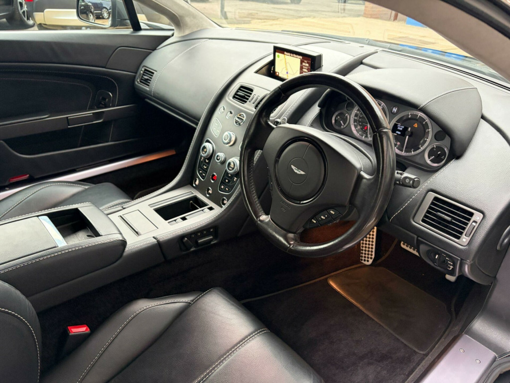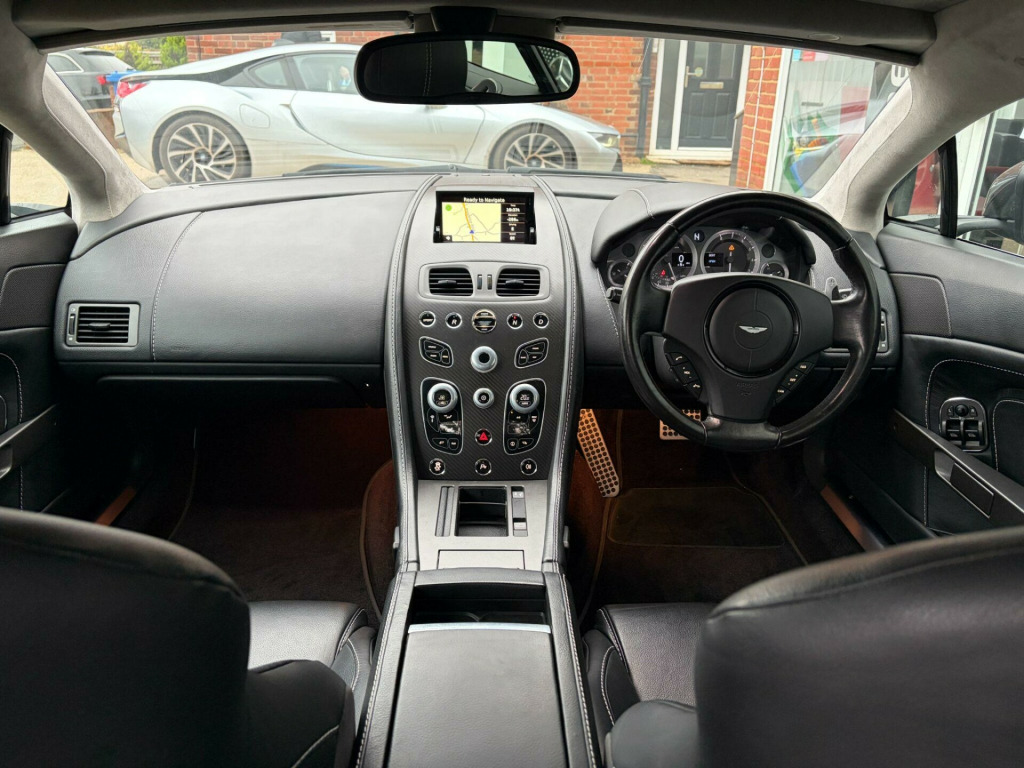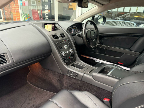 ** NATIONWIDE DELIVERY ** 9 ASTON MARTIN MAIN DEALER SERVICES / RECENT SERVICE COMPLETED ** MEMORY SEATS ** REAR CAMERA ** SAT NAV ** 19'' ALLOY WHEELS ** FRONT & REAR PARKING SENSORS ** CRUISE CONTROL ** ELECTRIC / MEMORY SEATS ** FOLDING MIRRORS ** DAB RADIO ** Presented in beautiful Quantum Silver (Grey) metallic with complimentary Obsidian Black full leather interior trim. Leather extended to dash & door cards with Carbon Fibre fascia. A stunning example benefitting from a full Aston Martin main dealer service history (9 Services). Service recently completed. Specification includes satellite navigation with full colour screen, rear view camera, DAB radio, Bluetooth telephone, front & rear parking sensors, electrically adjustable seats with driver and passenger memory functions, front centre armrest with storage facilty and cup holders, climate control / air conditioning, reach & rake adjustable multi function steering wheel with paddle shift gear change, cruise control, auto xenon headlamps, electrically adjustable & folding door mirrors, electric windows, push button start, multi airbags abs brakes, traction / vehicle stability control, tailored carpet mats, remote central locking with alarm / immobiliser function, aluminium door entry scuff plates, Black mesh grilles (bonnet & wings), finished with upgrade 19'' diamond cut / polished Graphite alloy wheels (unmarked). Premium Bridgestone tyres fitted all round. Buy with confidence from a long established dealer with fantastic reputation, feedback & reviews. 0 w aston martin audio system, 19in alloy wheels - 5 spoke silver wheel, 3.5mm auxiliary audio input socket, abs - anti lock braking system, airbag - dual-stage driver, airbag - dual-stage front passenger, airbag - front occupant side, alarm, aluminium-magnesium alloy and composite and steel body, aston martin tracking by cobra, automatic temperature control, bluetooth telephone preparation, brake calipers - anodised black, bright headlight bezels, bright tailpipe finisher, comfort suspension, contrast stitching, dsc - dynamic stability control with track mode, door mirrors - heated and electrically retractable, eba - emergency brake assist, ebd - electronic brakeforce distribution, electrically adjustable sports seats, extruded aluminium bonded vh body structure, extruded aluminium door side-impact beams, facia trim - graphite, front electric windows, glass ecu, graphite centre console finish and surround, hba - hydraulic brake assist, hsa - hill start assist, halogen projector headlights-main beam, headlights power wash, heated rear screen, high intensity discharge headlights-dipped beam, immobiliser, integrated apple ipod connector, led map reading lights, led rear lights, n400 sill design, oel - organic electroluminescent displays, ptc - positive torque control, platinum front grille, platinum meshes, pollen filter, power assisted steering, protective tape, rear parking sensors, remote control boot release, remote-control central door locking, seatbelts - warm charcoal, six-cd autochanger, steering column tilt and reach adjustment, steering wheel - leather, tc - traction control, trip computer, tyre pressure monitoring system, usb connector, waveform audio format/windows media player and mpeg audio file compatibility, strathmore leather - obsidian black, satellite navigation system, front parking sensors, cruise control, black headlight bezels, black meshes - bonnet and side strake, memory seats, reversing camera, 19in alloy wheels - 10 spoke graphite diamond turned, facia trim - carbon fibre