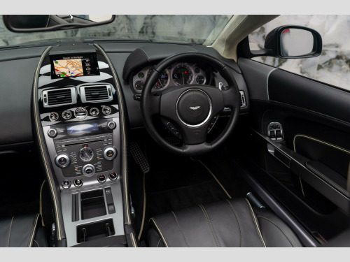 ll-grain leather - obsidian black, 2+2 seating arrangement, 20in alloy wheels - 5 spoke silver, 3.5mm auxiliary audio input socket, abs - anti lock braking system, ads - adaptive damping system with sport mode, airbag - dual-stage driver, airbag - dual-stage front passenger, airbag - front occupant side, alarm, aluminium/magnesium alloy and composite body, aston martin 700w premium audio with dolby logic ii, auto dimming interior rear view mirror, automatic temperature control, bluetooth telephone preparation, boot-mounted umbrella, brake calipers - black, bright finish grille, cruise control, dsc - dynamic stability control with track mode, door mirrors - powerfold, eba - emergency brake assist, ebd - electronic brakeforce distribution, electrically adjustable sports seats, exterior mirrors - three positions, extruded aluminium bonded vh body structure, extruded aluminium door side-impact beams, facia trim - walnut, fine contrast stitching, front parking sensors, glass ecu, graphite centre console finish and iridium silver surround, heated front seats, heated rear screen, immobiliser, integrated apple ipod connector, integrated led side lights and direction indicators, led map reading lights, led rear lights, lamy pen and pen holder, memory seats, oel - organic electroluminescent displays, rear parking sensors, remote control boot release, remote-control central door locking, satellite navigation system, servotronic speed-sensitive power-assisted steering, single bi-xenon headlights, six-cd autochanger, steering column tilt and reach adjustment, steering wheel - leather, steering wheel - leather sports, tc - traction control, tracking device, trip computer, tyre pressure monitoring system, tyre repair kit, usb connector, waveform audio format/windows media player and mpeg audio file compatibility, wind deflector