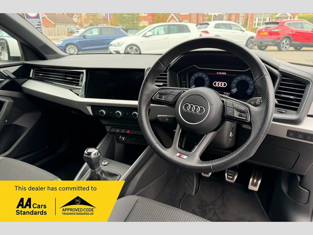 Boasting exceptionally low mileage for its age, this 2020 Audi A1 TFSI S line presents a compelling proposition. This Euro 6 compliant model, powered by an efficient 1.0 litre petrol engine, has covered just 26,164 miles. Its provenance is further assured with a clear vehicle history check and an MOT valid until September 2026. The last service was completed on 26th July 2024 at 17,749 miles, and it comes with a 3 month warranty for your peace of mind.  This Audi A1 S line is equipped with a range of notable features designed to enhance your driving experience. These include manual air conditioning for comfort, and a light and rain sensor that automatically activates the headlights. Parking is made easier with rear parking sensors, while the Bluetooth interface allows for seamless connectivity. The vehicle also benefits from LED headlights with dynamic rear indicators, providing excellent visibility. The fuel economy is a highlight, achieving an impressive 51 miles per gallon, indicating its efficiency compared to similar vehicles.  =================  Specification:  Bluetooth, DAB Radio, Apple CarPlay, Android Auto, Parking Sensors, Cruise Control, Air Conditioning.  ====================  Service History  25/07/2023 - 11447 miles - Audi; 26/07/2024 - 17749 miles - Audi.  ======================= 1 x SDXC Card Reader, 1 x USB-C and 1 x USB-A Charging Points, 10.25in Digital Instrument Cluster, 17in Alloy Wheels - 5-Twin-Spoke Design , 3-Spoke Leather Multi-Function Steering , 6 Passive Loud Speakers, Accent Areas in Structured Grey - Quartz, Aluminium Trim for Control Switches - Ai, Anti-Theft Alarm, Anti-Theft Wheel Bolts and Wheel Looseni, Audi Connect Safety and Service - e-call, Audi Pre-Sense Front with Pedestrian and, Audi Smartphone Interface, Auto-Dimming Rear-View Mirror, Bluetooth Interface, Body Coloured Door Mirrors, Centre Console with Two Cup Holders and , Cloth Headlining in Black, Cruise Control, DAB Digital Radio, Door Mirrors - Folding - Electrically Ad, Door Sill T