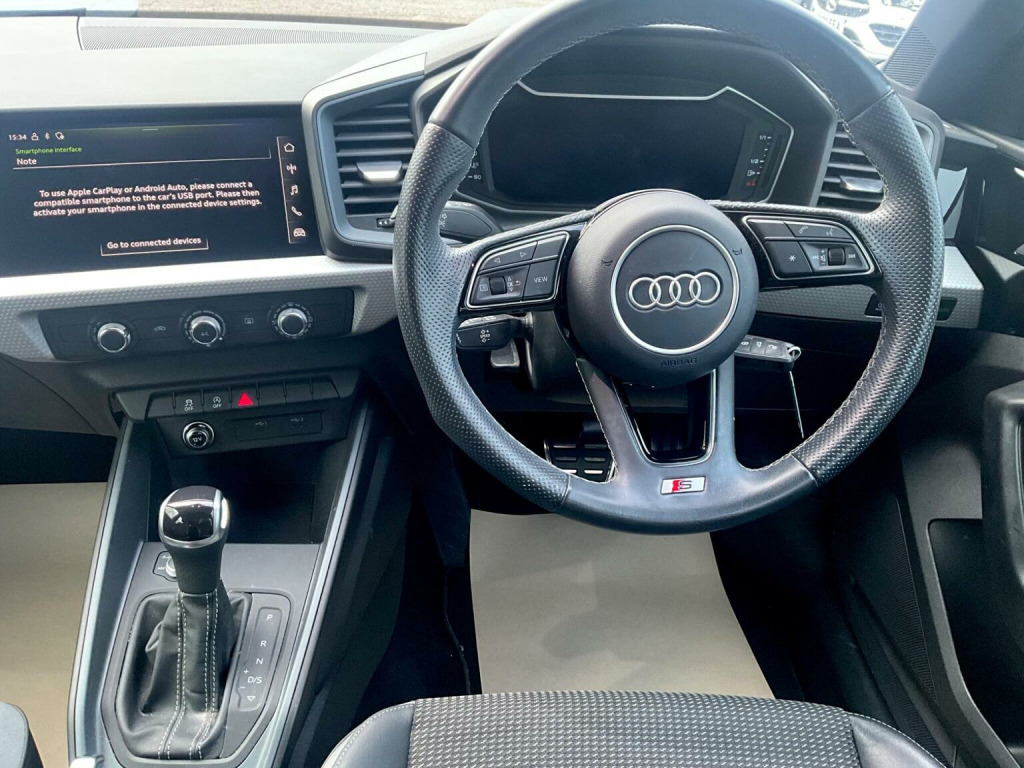 This 2023 Audi A1 TFSI S line boasts a full service history and has had only one owner from new. This Euro 6 compliant model features a 1.0 litre petrol engine and comes equipped with a Bluetooth interface for seamless connectivity. For convenience, it includes rear parking sensors with parking assistance, manual air conditioning, and automatic LED headlights with dynamic rear indicators. The light and rain sensor ensures your headlights are always set correctly. The S line trim enhances the already impressive A1, offering a refined driving experience. Youll appreciate the generous boot space, making it practical for everyday use and longer journeys. The combination of its low owner count, comprehensive service record, and desirable S line specification, alongside its modern features like LED lighting and parking assistance, sets this Audi A1 apart from other vehicles in its class.