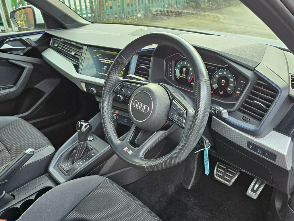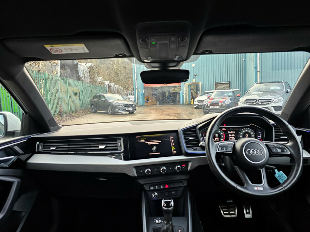 This 2019 Audi A1 1.0 TFSI 30 S line Sportback 5dr Petrol S Tronic Euro 6 (s/s) (116 ps) is a stylish and reliable hatchback with 80985 miles on it. Powered by a petrol engine, this vehicle comes with 5 seats and 5 doors, making it a practical choice for a small family. With features such as 1 x USB-C and 1 x USB-A Charging Points, 6 Passive Loud Speakers, Audi Connect Emergency and Service with E-Call, Audi Smartphone Interface, and Bluetooth Interface, this car offers modern technology and convenience. With its sleek design and efficient performance, this Audi A1 is a great option for anyone in the market for a versatile and economic vehicle.UK delivery available.Part exchange welcome.Extended warranty options.AA standards approved dealership.Trading standards approved dealership.Autotrader highly rated dealership. x usb-c and 1 x usb-a charging points, 6 passive loud speakers, audi connect emergency and service with e-call, audi smartphone interface, bluetooth interface, dab digital radio, mmi radio plus with 8.8 mmi colour display screen and mmi touch, sd card reader, 10.25in digital instrument cluster, air conditioning, aluminium trim for control switches - air vents and digital instrument cluster, auto-dimming rear-view mirror, centre console with two cup holders and 12v socket, cloth headlining in black, door sill trims - aluminium with s line logo, driver and front passenger seats with manual height-forwards and backwards adjustment, front and rear floor mats, gear knob in leather with aluminium trim, head restraints - rear, inlays in polygon structure - silver grey diamond paint - accent areas in structure grey quartz paint, interior lighting - front and rear reading lights and luggage compartment light, led interior light package, leatherette handbrake grip, manually adjustable lumbar support in front seats, pedals in stainless steel, rear fog lights, split folding rear seat, steering wheel - 3-spoke leather - multi-function plus with s badging, steering wheel - height and reach adjustable, tool kit and car jack, 17in alloy wheels - 5-twin spoke design - partly polished, anti theft locking wheel bolts, body coloured side sill, door mirrors - body coloured, door mirrors - electrically adjustable and heated with integrated led side indicators, electric windows - front and rear, front spoiler clip - rear diffuser clip in matt platinum grey, heat insulating glass - windscreen and side windows, heated rear windscreen, radiator grille - matt titanium black, radiator protective grille frame in matt aluminium silver, s line badges on the front wings, s line exterior bumpers, s line roof spoiler, side air inlet frames in titanium black, tyre repair kit, abs - anti-lock braking system, anti-theft alarm, audi pre-sense front with pedestrian and cyclist recognition, driver - front passenger - front side and head airbag system, esc - electronic stabilisation control inc abs - ebd - asr - edl, first aid kit and warning triangle, front passenger airbag deactivation switch, hill hold assist, isofix child seat mounting for front passenger and rear outer seats, remote central locking with 2 fold away keys, seat belt height adjustment for front seats, seat belt monitoring, audi drive select, cruise control, electromechanical power steering, lane departure warning, rear parking sensors, speed limiter, sport suspension, tyre pressure warning light, voice control, washer fluid level indicator, audi warranty 2 years 60000 miles, led headlights with led rear lights and dynamic rear indicators, light and rain sensor