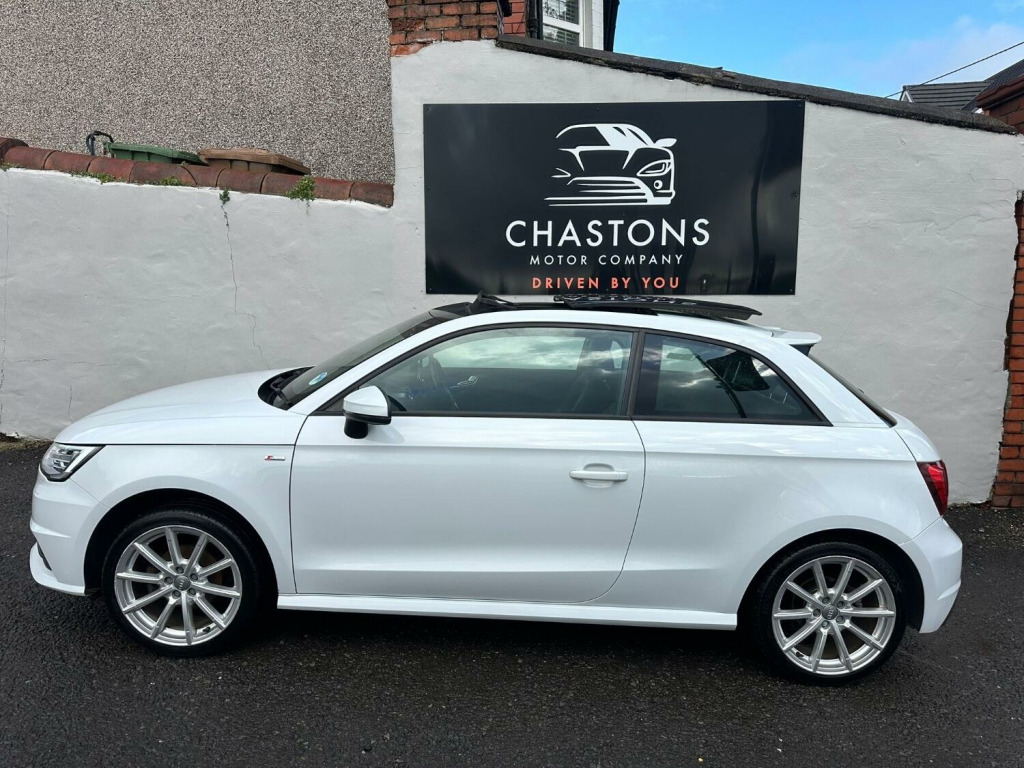 68 Plate Audi A1 1.0Tfsi S-Line 3dr Manual, finished in Pure white. Comes with great factory spec including Panoramic roof, Parking sensors, Half leather s-line seats, A/c, Electric folding and heated mirrors, Auto lights and wipers, Cruise control, Voice active blue tooth with sat Nav. Car will have a fresh service before the sale, Great value at just £10999.