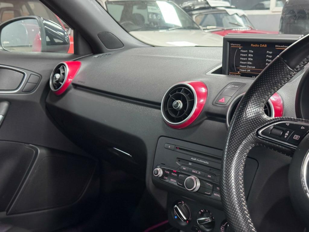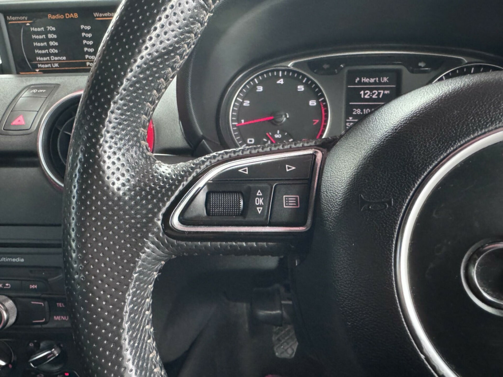2015 AUDI A1 1.2 TFSI S LINE STYLE EDITION | £30 ROAD TAX A YEAR| UPGRADED 17”ALLOYS| XENON HEADLIGHTS | LOW MILES| JUST BEEN SERVICED | 12 MONTHS MOT| 2015 MODEL| IMMACULATE CONDITION INSIDE OUT | DAB RADIO| AIR CON| CHEAP INSURANCE | BRILL MPG| BEST COLOUR COMBINATION | FINANCE ARRANGED £0 DEPOSIT NEEDED| PART EXCHANGE WELCOME | LOW MONTHLY PAYMENTS | DONT PAY ANYTHING TILL NEXT MONTH| RAC APPROVED DEALERSHIP| HIGHLY RATED FOR OUR CUSTOMER SERVICE OVER 300 5 STAR REVIEWS ON AUTOTRADER |. 17in Alloy Wheels - 5-V-Spoke Design Bi-Colour, 6.5in Display Screen, ABS - Anti-Lock Braking System, ASR - Anti Slip Regulation, AUX-IN Socket, Air Conditioning, Air Vent Sleeves - Body Colour, Air inlet blade and diffuser insert in Platinum grey, Airbags - Driver, Airbags - Front Passenger, Airbags - Front Side System, Airbags - Head System, Alarm - Thatcham Category 1, Aluminium Trim for Control Switches, Ambient Lighting, Anti Theft Locking Wheel Bolts, Black Styling Package, Centre Console in mono pur, Cloth Headlining in Black, Concert Radio - MP3-CD Player, DAB Digital Radio, Display Screen Monochrome - 3.5in Dashboard Binnacle, Door Handles - Illuminated, Door Mirrors - Electrically Adjustable and Heated, Door Sill Trims - Aluminium with S Line Logo, Door or Boot Open Warning, Drivers Information System - DIS, EBD - Electronic Brakeforce Distribution, EDL - Electronic Differential Lock, ESP - Electronic Stability Programme, Efficiency Program in the Drivers Information System - DIS, Electric Windows - Front, Exterior Mirrors in Brilliant Black, First Aid Kit, Floor Mats, Fog Lights - Matt Black Surrounds, Front Fog Lights, Front Passenger Airbag Deactivation Switch, Front Reading Lights, Front Sports Seats, Gear Knob - Leather Sports with Aluminium Trim, Glovebox - Illuminated, Handbrake Grip - Black Leather, Head Restraints - Rear, Headlights - Automatic Adjustment, Headlights - Bi-Xenon Plus, Headlights - Dynamic Range Control, Headlights Washers, Heat Insulating Glass - Windscreen and Side Windows, Heated Rear Windscreen, Heated Windscreen Washer Jets, ISOFIX Child Seat Mounting for Front Passenger, ISOFIX Child Seat Preparation for Rear Seats with Top Tether, Illuminated Footwell Lighting, Illuminated Vanity Mirrors, Immobiliser, LED Daytime Running Lights, LED Interior Light Package, LED Rear Lights, Luggage Compartment - LED Light, Manually Adjustable Lumbar Support in Front Seats, Mobile Telephone Preparation - Bluetooth Interface, Non-Smoking Package, Number Plate Holder in Matt Black, Outside Temperature Display, Pollen Filter, Power Steering, Radiator Grille - Matt Black, Radiator Grille Frame - Highly Polished Black, Remote Central Locking with 2 Fold Away Keys, Roof Contrast Line - Brilliant Black, S Line Badges on Wings, S Line Roof Spoiler, S Line Suspension, SD Card Reader, Seat Belt Reminder for All Seats, Seats - Front Easy Entry, Seats - Front Height Adjustment, Seats - Front with Embossed S Line Logo, Speakers x6 - Front and Rear, Split-Folding Rear Seats, Steering Wheel - 3-Spoke Leather - Multi-function - Sports, Steering Wheel - Height and Reach Adjustable, Steering Wheel - Multi-function, Tool Kit and Car Jack, Tow Away Protection and Interior Monitoring, Tyre Pressure Monitoring System, Tyre Repair Kit, Voice Control - Telephone, Warning Triangle, Washer Fluid Level Indicator, 17in Alloy Wheels - 5-Arm Design Bi-Colour, Technology Package.