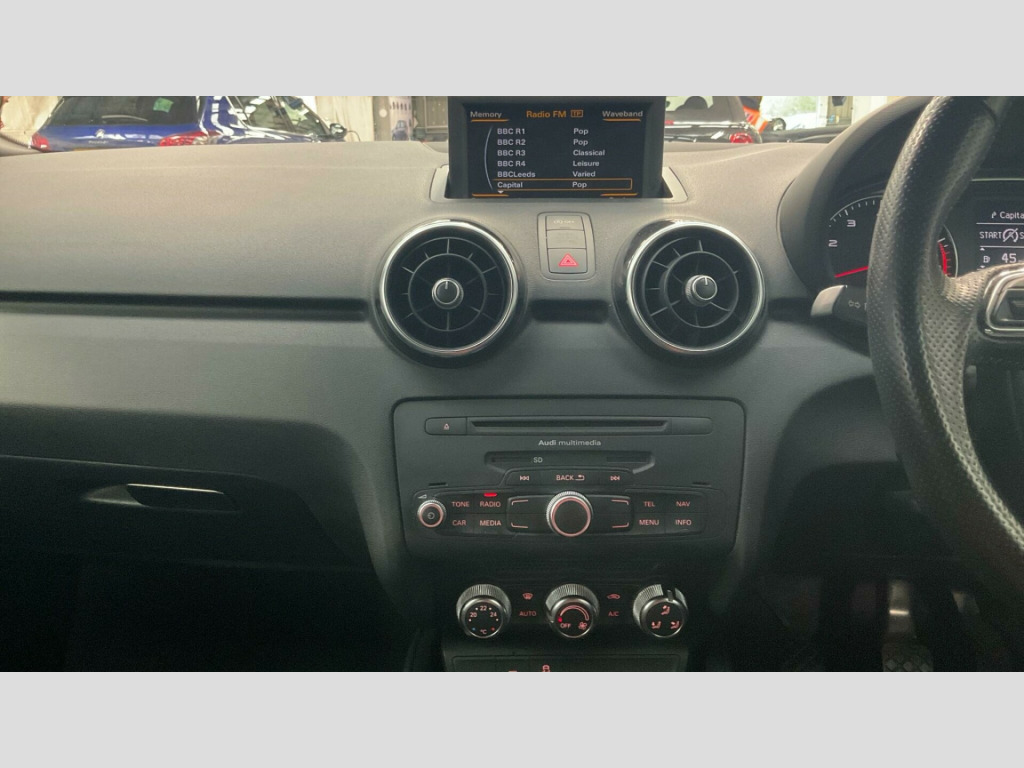 This Audi A1 TFSI Black Edition from 2014 presents a compelling proposition with its remarkably low mileage of just 57,000 miles and a history of only two owners, all confirmed by a clear vehicle history check. This stylish hatchback boasts a 1.4 litre petrol engine, offering an engaging driving experience with a swift 0-62mph acceleration time of 7.9 seconds. The Black Edition trim enhances its appeal, featuring sophisticated Bi-Xenon Plus headlights for superior visibility and an electronic climate control system to ensure passenger comfort in all conditions. Furthermore, the integrated Bluetooth interface provides seamless mobile telephone connectivity, keeping you connected on the go.The Audi A1 TFSI Black Edition stands out from other vehicles in its class due to its impressive combination of performance and efficiency. Its low CO2 emissions highlight its consideration for the environment, making it a more economical choice. The combination of its low mileage, limited ownership, and the desirable Black Edition specification, along with its strong acceleration figures, signifies a well maintained and highly capable compact car that offers a premium driving experience. in alloy wheels - 5-arm rotor design titanium finish, 6.5in display screen, abs - anti-lock braking system, asr - anti slip regulation, aux-in socket, air vent sleeves - high gloss black, air inlet blade and diffuser insert in platinum grey, airbags - driver, airbags - front passenger, airbags - front side system, airbags - head system, alarm - thatcham category 1, aluminium trim for control switches, ambient lighting, amplifier - 6 channel, anti theft locking wheel bolts, audi hill hold assist, audi sound system, automatic wipers with rain sensor, black styling package, cloth headlining in black, concert radio - mp3-cd player, dab digital radio, door handles - illuminated, door mirrors - body coloured with integrated indicators, door mirrors - electrically adjustable and heated, door sill trims - aluminium with s line logo, drivers information system - dis, ebd - electronic brakeforce distribution, edl - electronic differential lock, esp - electronic stability programme, electric windows - front, electronic climate control, first aid kit, floor mats, fog lights - matt black surrounds, front fog lights, front passenger airbag deactivation switch, front reading lights, front sports seats, glovebox - illuminated, halogen headlights, handbrake grip - leather, head restraints - rear, headlights - automatic adjustment, headlights - bi-xenon plus, headlights - coming-leaving home function, headlights - dynamic range control, headlights washers, heat insulating glass - windscreen and side windows, heated rear windscreen, heated windscreen washer jets, isofix child seat preparation for rear seats, illuminated footwell lighting, illuminated vanity mirrors, immobiliser, led daytime running lights, led interior light package, led rear lights, light and rain sensor package, manually adjustable lumbar support in front seats, mobile telephone preparation - bluetooth interface, non-smoking package, power steering, privacy glass, radiator grille and frame - highly polished black, remote central locking with 2 fold away keys, sd card reader, seat belt reminder for all seats, seats - front easy entry, seats - front height adjustment, split-folding rear seats, steering wheel - 3-spoke leather - multi-function - sports - shift paddles, steering wheel - height and reach adjustable, steering wheel - multi-function, sunband for windscreen, tool kit and car jack, tyre repair kit, voice control - telephone, warning triangle, washer fluid level indicator