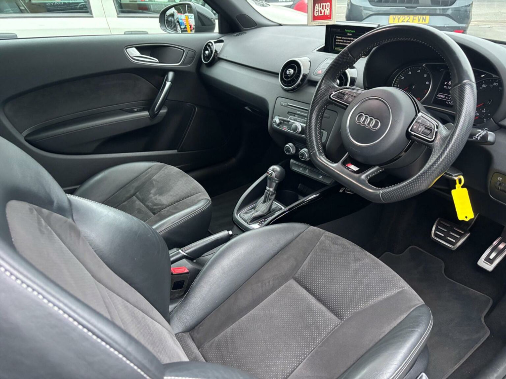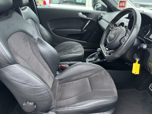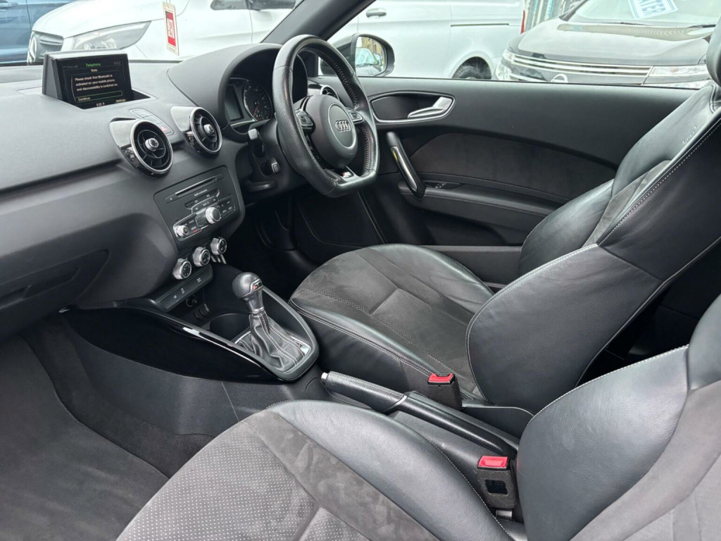 WE ARE PLEASED TO OFFER THIS HIGHLY DESIRABLE HIGH SPECIFICATION WELL MAINTAINED ECONOMICAL RARE PETROL AUTOMATIC AUDI A1 1.4 TFSI CoD BLACK EDITION S-TRONIC AUTOMATIC THREE DOOR EURO SIX + FINISHED IN THE BEST COLOUR OF MYTHOS BLACK METALLIC AND IS COMPLEMENTED WITH A BLACK PART LEATHER AND ALCANTARA UPHOLSTERY + ONLY 48,973 MILES HAS BEEN COVERED IN TOTAL + LAST LADY OWNER SINCE SEPTEMBER 2023 AND IS BACKED WITH AN EXCELLENT SERVICE HISTORY + JUST BEEN SERVICED + THE MOT IS TILL THE 4TH OF SEPTEMBER 2026 + OUTSTANDING CONDITION THROUGHOUT AND DRIVES SUPERB + 150 BHP MODEL + FULL EDITION SPECIFICATION WHICH INCLUDES SATELLITE NAVIGATION / DAB TUNER / MEDIA PACK / CRUISE CONTROL / TINTED GLASS / 18 MULTI SPOKE ALLOY WHEELS / BLACK EDITION EXTERIOR STYLING PACK / MULTI FUNCTION STEERING WHEEL / REAR PARKING DISTANCE CONTROL PLUS MUCH MORE + HANDBOOK PACK + DIGITAL PRINTOUT SERVICE HISTORY + 2 X KEYS + ANY TRIAL OR INSPECTION IS WELCOMED + HPI CLEAR WITH CERTIFICATE + SIX MONTHS NATIONWIDE WARRANTY IS INCLUDED + VIEWING IS ESSENTIAL TO APPRECIATE THIS MUCH SOUGHT AFTER MODEL. We have been established in Baildon for over 20 years. All our vehicles are fully inspected, prepared and valeted. We are finance specialists. Part exchange is welcome. All major credit and debits accepted. Open 7 days. Our postcode is BD177EX.