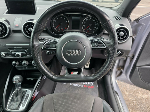 Immaculate throughout, you wont find a nicer one. Supplied with an award winning 6 month warranty, Prepared to Hares high standards. This 2016 Audi A1 1.4 TFSI CoD Black Edition Sportback has 61271 miles on the clock and is a sleek hatchback powered by petrol. With an MOT valid until 04/10/2026, this 5-door vehicle offers 5 seats and is ULEZ compliant, making it perfect for city driving. The Euro 6 (s/s) engine boasts 150 ps, ensuring a powerful and efficient ride. Features like the 12V Power Socket, AMI - Audi Music Interface, and AUX-IN Socket provide modern convenience, while the 180 Watt amplifier and 6-channel system deliver top-notch sound quality. Whether tackling the urban jungle or embarking on a long road trip, this Audi A1 offers style, performance, and practicality in one attractive package. v power socket - centre console, ami - audi music interface, aux-in socket, amplifier - 180 watt, amplifier - 6 channel, audi sound system, bluetooth audio streaming, concert radio - mp3-cd player, dab digital radio, display screen - 6.5in high gloss black, display screen monochrome - 3.5in dashboard binnacle, mobile telephone preparation - bluetooth interface, sd card reader x2, satellite navigation system - preparation, speakers x6 - front and rear, subwoofer, usb connection, 18in alloy wheels - 5-v-spoke design titanium look-diamond cut, anti theft locking wheel bolts, body coloured door mirrors, door handles - aluminium look trim, door mirrors - electrically adjustable and heated, electric windows - front and rear, exhaust tailpipe - high-gloss black trims, heat insulating glass - windscreen and side windows, heated rear windscreen, high-gloss black styling package, light and rain sensor package, number plate holder - matt black, privacy glass, radiator grille - matt black, radiator grille frame - high gloss black, rear diffuser - high gloss black, s line badges on wings, s line body styling, s line roof spoiler, side air inlets in high gloss black, spoiler - front lip - high gloss black, tyre repair kit, abs - anti-lock braking system, asr - anti slip regulation, adaptive brake lights, airbags - driver, airbags - front passenger, airbags - front side system, airbags - head system, alarm - thatcham category 1, ebd - electronic brakeforce distribution, esp - electronic stability programme, first aid kit, front passenger airbag deactivation switch, isofix child seat preparation for rear seats with top tether, immobiliser, radio remote control with safelock and anti theft system, remote central locking with 2 fold away keys, seat belt reminder for all seats, secondary collision brake assist, two fold away keys, warning triangle, air humidity sensor, air vent sleeves - high gloss black, aluminium trim for control switches, ambient lighting, automatic wipers with rain sensor, centre console in high-gloss black, cloth headlining in black, connectivity package, cup holders - x2 in centre console, dashboard - black, door handles - illuminated, door sill trims - aluminium with s line logo, door sill trims with aluminium inlay, electronic climate control, front floor mats, front reading lights, front sports seats, gear knob - leather sports with aluminium trim, glovebox - illuminated, handbrake grip - leather, head restraints - rear, headlights - dynamic range control, illuminated footwell lighting, illuminated front door armrests, illuminated vanity mirrors, interior elements - glove compartment - aluminium, led interior light package, luggage compartment - led light, manually adjustable lumbar support in front seats, non-smoking package, pedals in stainless steel, pollen filter, reflected lighting for centre console, seats - drivers manual height adjustment, seats - front passenger manual height adjustment, seats - front with embossed s line logo, seats - rear x 3, split-folding rear seats, steering wheel - 3-spoke leather - multi-function - sports, steering wheel - height and reach adjustable, steering wheel - multi-function, tp memo - automatically saves traffic news, tool kit and car jack, windscreen defrost button, audi drive select, door or boot open warning, drivers information system - dis, edl - electronic differential lock, efficiency program in the drivers information system - dis, electromechanical power steering, energy saving - gearshift indicator, outside temperature display, suspension - s line, tyre pressure monitoring system, voice control - telephone, washer fluid level indicator, front fog lights, headlights - automatic adjustment, headlights - coming-leaving home function, headlights - light sensor, headlights washers, led daytime running lights, led rear lights, xenon plus headlights