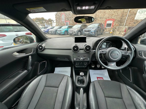 Finished in Mythos black, sporty, refined, and superbly maintained — this 2018 (18) Audi A1 1.4 TFSI CoD S line Sportback combines premium build quality with strong performance and impressive efficiency. Powered by the 1.4-litre TFSI Cylinder on Demand (CoD) petrol engine producing 150PS, it delivers lively performance while seamlessly switching to two-cylinder operation for improved economy and Euro 6 emissions compliance. This example boasts an excellent service history with six recorded Audi services, including a recent service carried out in September 2025, demonstrating outstanding care and maintenance. It also benefits from the desirable Comfort and Sound Package, adding Audi sound system, rear parking sensors, and enhanced cabin comfort. The S line trim adds dynamic styling, sports seats, LED headlights, and 18-inch alloy wheels. Presented in superb condition throughout and fully inspected and prepared to our high retail standards. 17in Alloy Wheels - 10-Spoke Design High, Acoustic Parking System - Rear, Adaptive Brake Lights, Air Conditioning, Air Vent Sleeves - High Gloss Black, Aluminium Trim for Control Switches-Glov, AMI - Audi Music Interface, Anti Theft Locking Wheel Bolts, Audi Drive Select, AUX-IN Socket, Body Coloured Door Mirrors, Centre Console with Two Cup Holders and , Cloth Headlining in Black, Comfort and Sound Package, Concert Radio, Connectivity Package, Cruise Control, DAB Digital Radio, Display Screen - 6.5in High Gloss Black, Door Mirrors - Electrically Adjustable a, Door Sill Trims - Aluminium with S Line , Driver - Front Passenger - Front Side an, Driver and Front Passenger Seats with Ma, Drivers