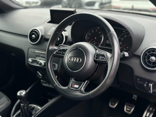 The Audi A1 1.4 TFSI S line (registration AP67 JKE) is a stylish and compact 3-door hatchback that combines sporty design with premium build quality. Powered by a 1.4-litre TFSI petrol engine, it delivers a strong balance of performance and efficiency, meeting Euro 6 emissions standards. With a manual transmission, this A1 offers an engaging driving experience and precise handling, characteristic of Audi's engineering excellence. The S line trim enhances its sporty appeal, featuring distinctive exterior styling such as aggressive bumpers, side skirts, S line badges, and alloy wheels, along with a refined interior boasting sports seats, S line detailing, and premium materials. Compact yet practical, the Audi A1 1.4 TFSI S line is well-suited for urban driving while providing the comfort and sophistication expected from the Audi brand. 17in Alloy Wheels - 10-Spoke Design High, AMI - Audi Music Interface, AUX-IN Socket, Acoustic Parking System - Rear, Adaptive Brake Lights, Air Conditioning, Air Vent Sleeves - High Gloss Black, Aluminium Trim for Control Switches-Glov, Anti Theft Locking Wheel Bolts, Audi Drive Select, Body Coloured Door Mirrors, Centre Console with Two Cup Holders and , Cloth Headlining in Black, Concert Radio, Connectivity Package, Cruise Control, DAB Digital Radio, Display Screen - 6.5in High Gloss Black, Door Mirrors - Electrically Adjustable a, Door Sill Trims - Aluminium with S Line , Driver - Front Passenger - Front Side an, Driver and Front Passenger Seats with Ma, Drivers Information System - DIS,