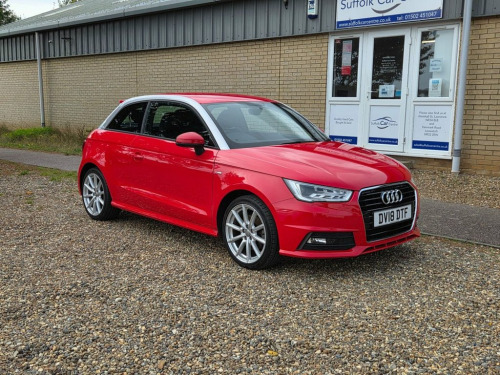 AUDI A1 1.4 TFSI S line Hatchback 3dr Petrol S Tronic Euro 6 (s/s) (125 ps) Service History and 12 Months MOT 6 Months Premium Blue Chip Warranty Road Side Assistance (Optional) Located at Reydon 17in Alloy Wheels - 10-Spoke Design High, AMI - Audi Music Interface, AUX-IN Socket, Acoustic Parking System - Rear, Adaptive Brake Lights, Air Conditioning, Air Vent Sleeves - High Gloss Black, Aluminium Trim for Control Switches-Glov, Anti Theft Locking Wheel Bolts, Audi Drive Select, Audi Hill Hold Assist, Body Coloured Door Mirrors, Centre Console with Two Cup Holders and , Cloth Headlining in Black, Concert Radio, Connectivity Package, Cruise Control, DAB Digital Radio, Display Screen - 6.5in High Gloss Black, Door Mirrors - Electrically Adjustable a, Door Sill Trims - Aluminium with S Line , Driver - Front Passenger - Front Side an, Driver and Front Passenger Seats with Ma, Drivers Inf
