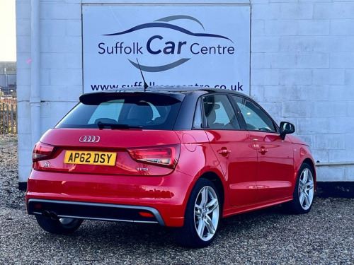 AUDI A1 1.4 TFSI S line Sportback 5dr Petrol Manual Euro 6 (s/s) Service History and 12 Months MOT 6 Months Premium Blue Chip Warranty Road Side Assistance (Optional) Located at Lowestoft 17in Alloy Wheels - 5-Twin-Spoke Design, 6.5in Display Screen, ABS - Anti-Lock Braking System, ASR - Anti Slip Regulation, AUX-IN Socket, Air Conditioning, Air Vent Sleeves - High Gloss Black, Airbags - Driver, Airbags - Front Passenger, Airbags - Front Side System, Airbags - Head System, Alarm - Thatcham Category 1, Aluminium Trim for Control Switches, Ambient Lighting, Anti Theft Locking Wheel Bolts, Cloth Headlining in Black, Concert Radio - MP3-CD Player, Door Handles - Illuminated, Door Mirrors - Body Coloured with Integr, Door Mirrors - Electrically Adjustable a, Door Sill Trims - Aluminium with S Line , Drivers Information System - DIS, EBD - Electronic Brakeforce Distribution, EDL -