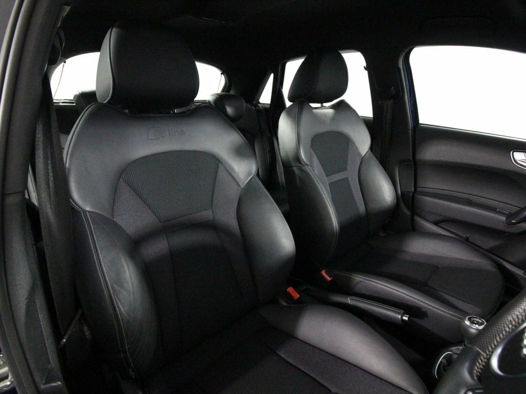 Service history with 3 services. Last serviced at 82,874 miles. This 2015 Audi A1 1.4 TFSI S line Sportback delivers a sporty and refined drive, featuring distinctive 17-inch high-gloss 10-spoke alloy wheels and S line body styling including badges, roof spoiler, and aluminium door sills. The bi-xenon plus headlights with dynamic range control and LED daytime running lights provide excellent visibility, complemented by heated front seats (£215 option) for added comfort. Scuba Blue paint (£340 option) adds a unique touch to this dynamic hatchback. Inside, the cabin is well-appointed with front sports seats embossed with the S line logo, a 6.5-inch high-gloss black display screen, and multifunction leather sports steering wheel with height and reach adjustment. Ambient and footwell lighting, illuminated door armrests, and vanity mirrors enhance the interior atmosphere. The SD card-based satellite navigation system (£570 option) integrates seamlessly with the premium sound system and Bluetooth audio streaming for connected entertainment. Safety features include multiple airbags, electronic stability programme with traction control, electronic differential lock, secondary collision brake assist, and tyre pressure monitoring system. Additional practicalities include front and rear electric windows, remote central locking with two fold-away keys, tow away protection with interior monitoring, and a comprehensive tool kit with a tyre repair kit. This Audi A1 S lin 12V Power Socket - Centre Console, 17in Alloy Wheels - 10-Spoke Design High, ABS - Anti-Lock Braking System, Adaptive Brake Lights, Air Conditioning, Air Vent Sleeves - High Gloss Black, Airbags - Driver, Airbags - Front Passenger, Airbags - Front Side System, Airbags - Head System, Alarm - Thatcham Category 1, Aluminium Trim for Control Switches, Ambient Lighting, AMI - Audi Music Interface, Anti Theft Locking Wheel Bolts, ASR - Anti Slip Regulation, Audi Drive Select, Auto-Dimming Rear-View Mirror, AUX-IN Socket, Bluetooth Audio Streaming, Cloth Headlining in Black, Comfort Package, Concert Radio - MP3-CD Player, Cup Holders - x2 in Centre Console, DAB Digital Radio, Dashboard - Black, Dis