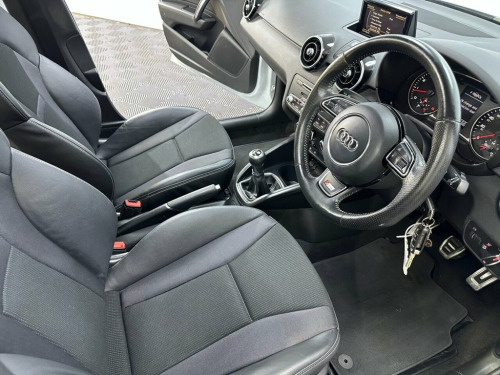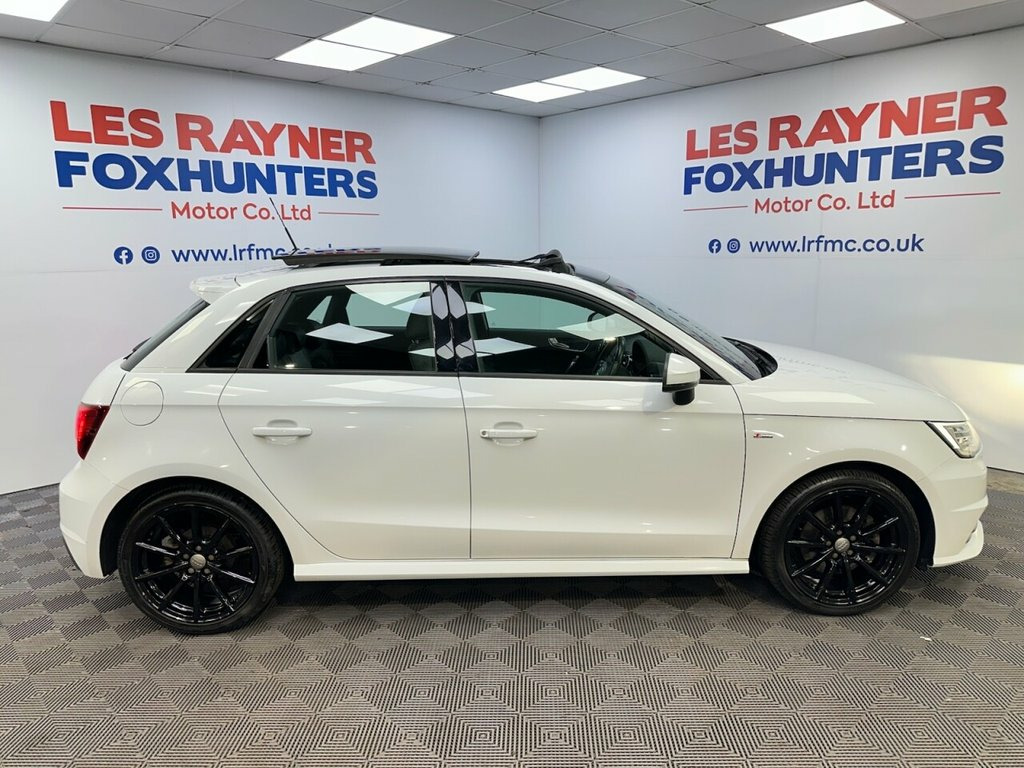 NG17ZNB AUDI A1 1.4 TFSI S line Sportback 5dr Petrol Manual Euro 6 (s/s) (125 ps)- 46K miles- 1 former The Audi A1 S-line offers a great specification of 17" immaculate gloss black alloy wheels, multifunction steering wheel, electric glass sunroof, xenon headlights, rear park sensors, half leather, DAB and FM Radio, Drive select driving modes, Air conditioning, isofix, Bluetooth, electric windows and remote central locking. Looks stunning in in White and with the gloss black alloys it really sets it off! Superb value for money at this price! The Little A1 will come fully serviced and with a new 12 Months MOT and 3 month no hassle warranty! Whats App Part Ex Valuation Hotline! Send photo's and details to 07591835255 Panoramic Sunroof - Open Sky