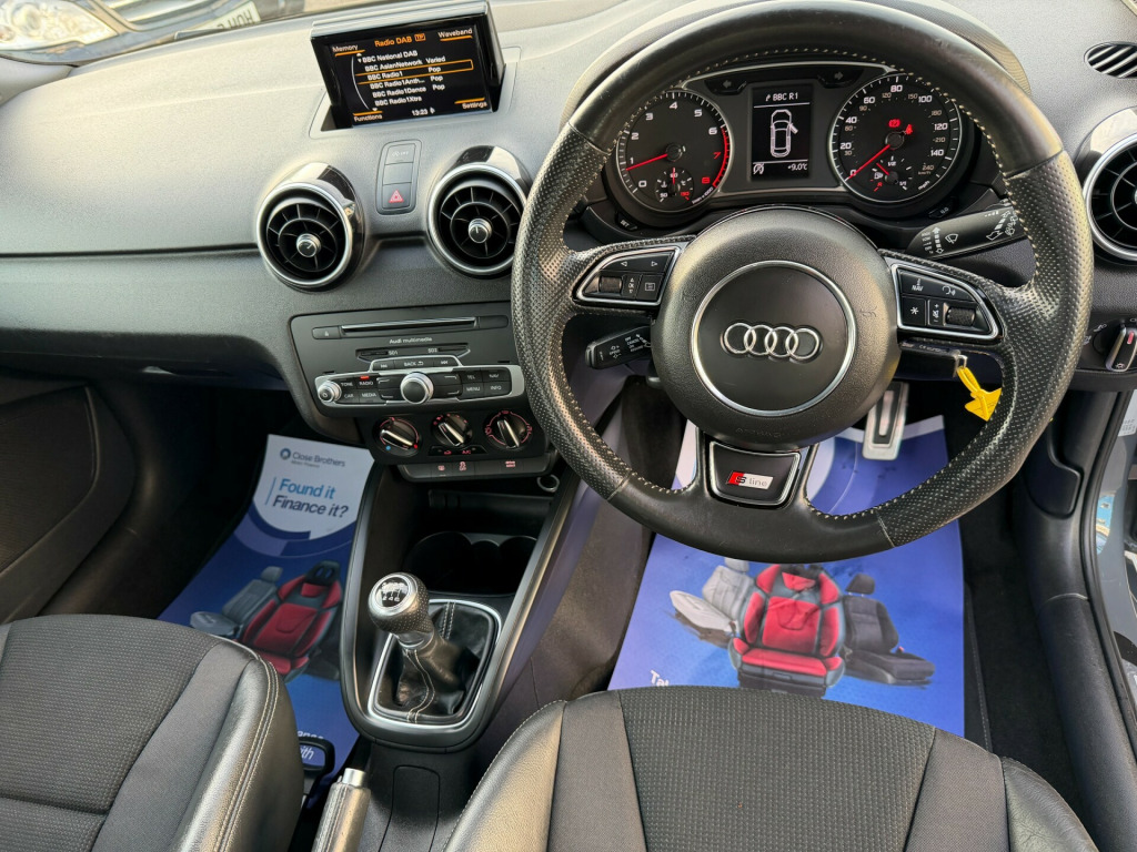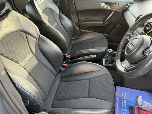 This 2018 Audi A1 1.4 TFSI S line Sportback 5dr Petrol Manual Euro 6 (s/s) (Nav) (125 ps) hatchback with 49761 miles on it is the perfect blend of style and performance. Its 5 doors and 5 seats make it ideal for a small family or those who enjoy road trips with friends. With an MOT valid until 09/12/2026 and ULEZ compliant, this car offers peace of mind and city-friendly driving. Its petrol engine and Euro 6 emissions standard make it an efficient and environmentally friendly choice. Featuring 17in Alloy Wheels, Anti Theft Locking Wheel Bolts, and Electric Windows, this Audi A1 is designed with both comfort and security in mind. The electrically adjustable and heated body coloured door mirrors add convenience and style to this vehicle, making it a great option for anyone seeking a reliable and stylish hatchback., in alloy wheels - 10-spoke design high gloss, anti theft locking wheel bolts, door mirrors - body coloured with integrated indicators, door mirrors - electrically adjustable and heated, electric windows - front and rear, heat insulating glass - windscreen and side windows, heated rear windscreen, polished tailpipes, rear diffuser - painted in platinum grey, s line badges on the front wings, s line body styling, s line roof spoiler, tyre repair kit, 6.5in mmi display screen in high-gloss black - manually retractable, ami - audi music interface, aux-in socket, concert radio, dab digital radio, mobile telephone preparation - bluetooth interface, sd card reader, satellite navigation system - sd card based, usb charging adaptor, acoustic parking system - rear, audi drive select, cruise control, drivers information system - dis, electromechanical power steering, s line sports suspension, tyre pressure monitoring system, voice control of key telephone and radio functions, washer fluid level indicator, adaptive brake lights, driver - front passenger - front side and head airbag system, esc - electronic stabilisation control, first aid kit, front passenger airbag deactivation switch, hill hold assist, isofix child seat mounting, remote central locking with 2 fold away keys, seat belt height adjustment for front seats, seat belt monitoring, secondary collision brake assist, thatcham category 1 alarm and immobiliser, three-point seat belts, warning triangle, air conditioning, air vent sleeves - high gloss black, aluminium trim for control switches-glove compartment-door handles-door sills, centre console with two cup holders and 12v socket, cloth headlining in black, connectivity package, door sill trims - aluminium with s line logo, driver and front passenger seats with manual height-forwards and backwards adjustment, front floor mats, glovebox - illuminated, head restraints - rear, led interior light package, leather handbrake grip and sports gear knob with aluminium trim, manually adjustable lumbar support in front seats, rear fog lights, split folding rear seat, steering wheel - 3-spoke leather - multi-function - sports, steering wheel - height and reach adjustable, three rear seats, tool kit and car jack, front fog lights, headlights - xenon, led rear lights